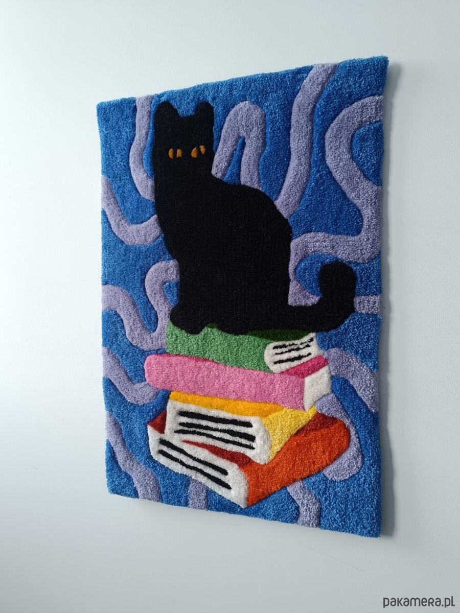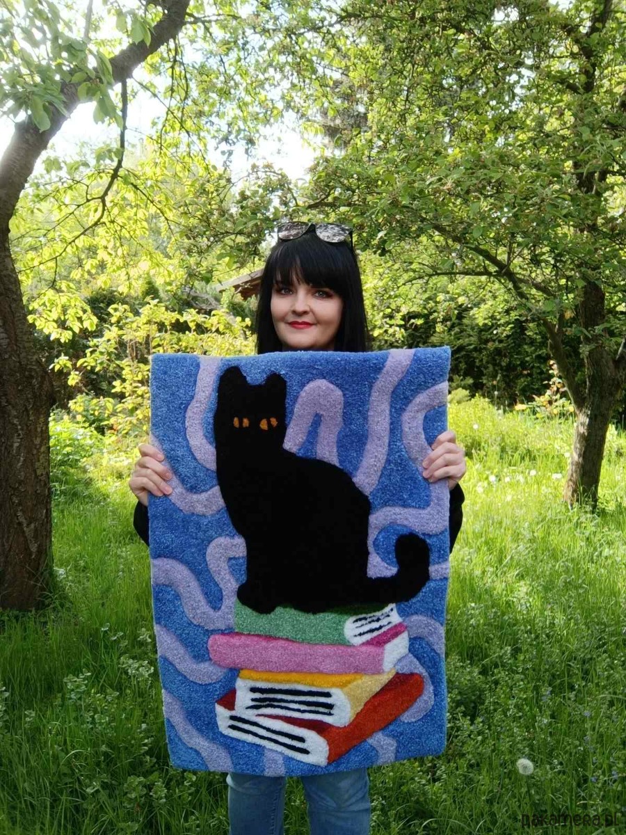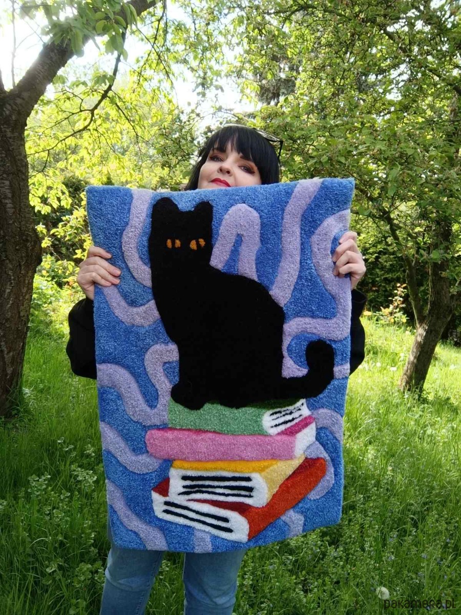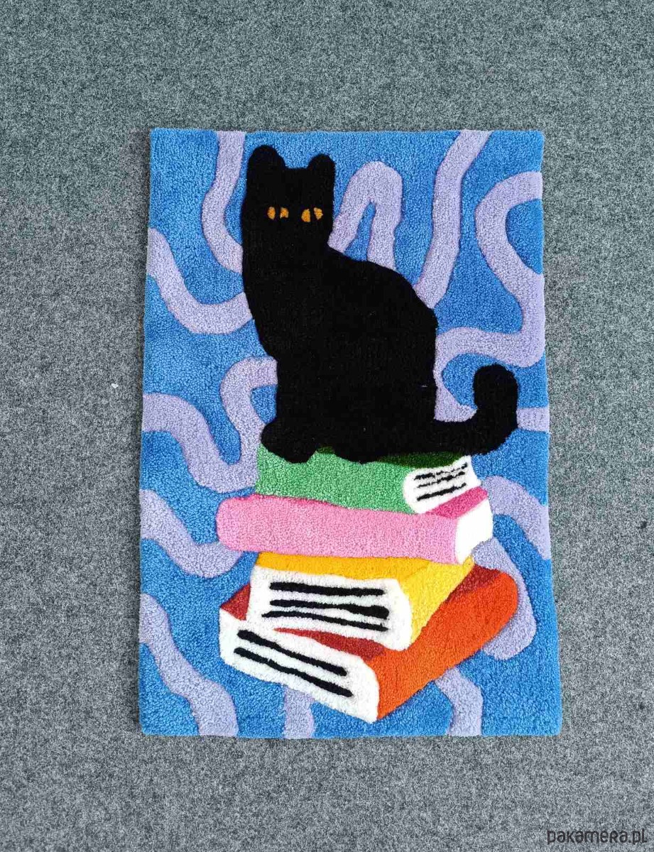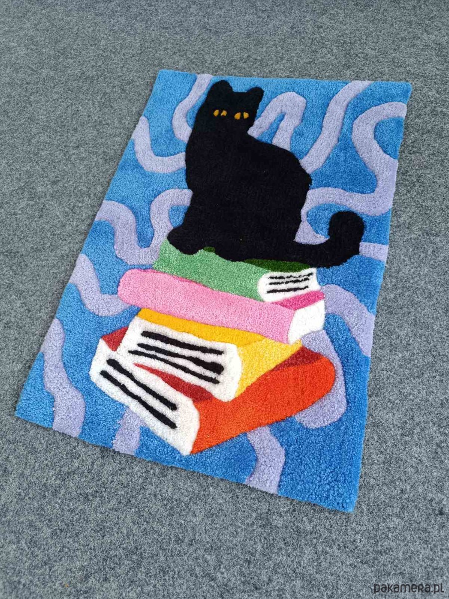 Koty i książki to najlepsze połączenie :) Pomyślałam, że będzie jeszcze lepiej kiedy dwie moje ulubione rzeczy będą na wzorem na dywanie! Jeśli też kochasz koty i książki ten dywan jest właśnie dla ciebie :D