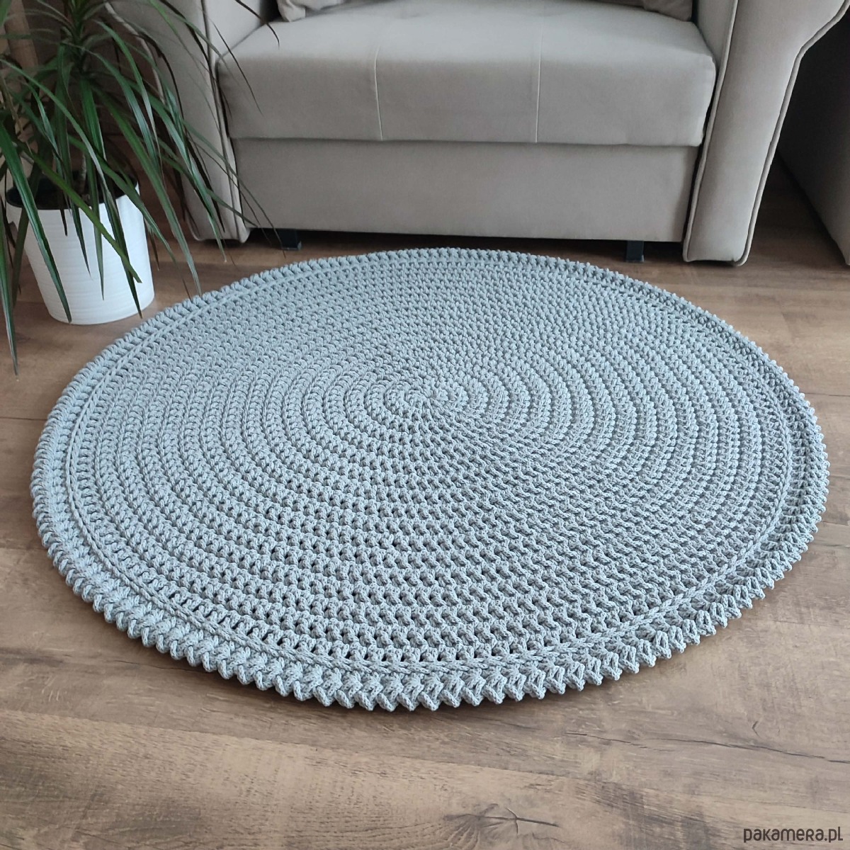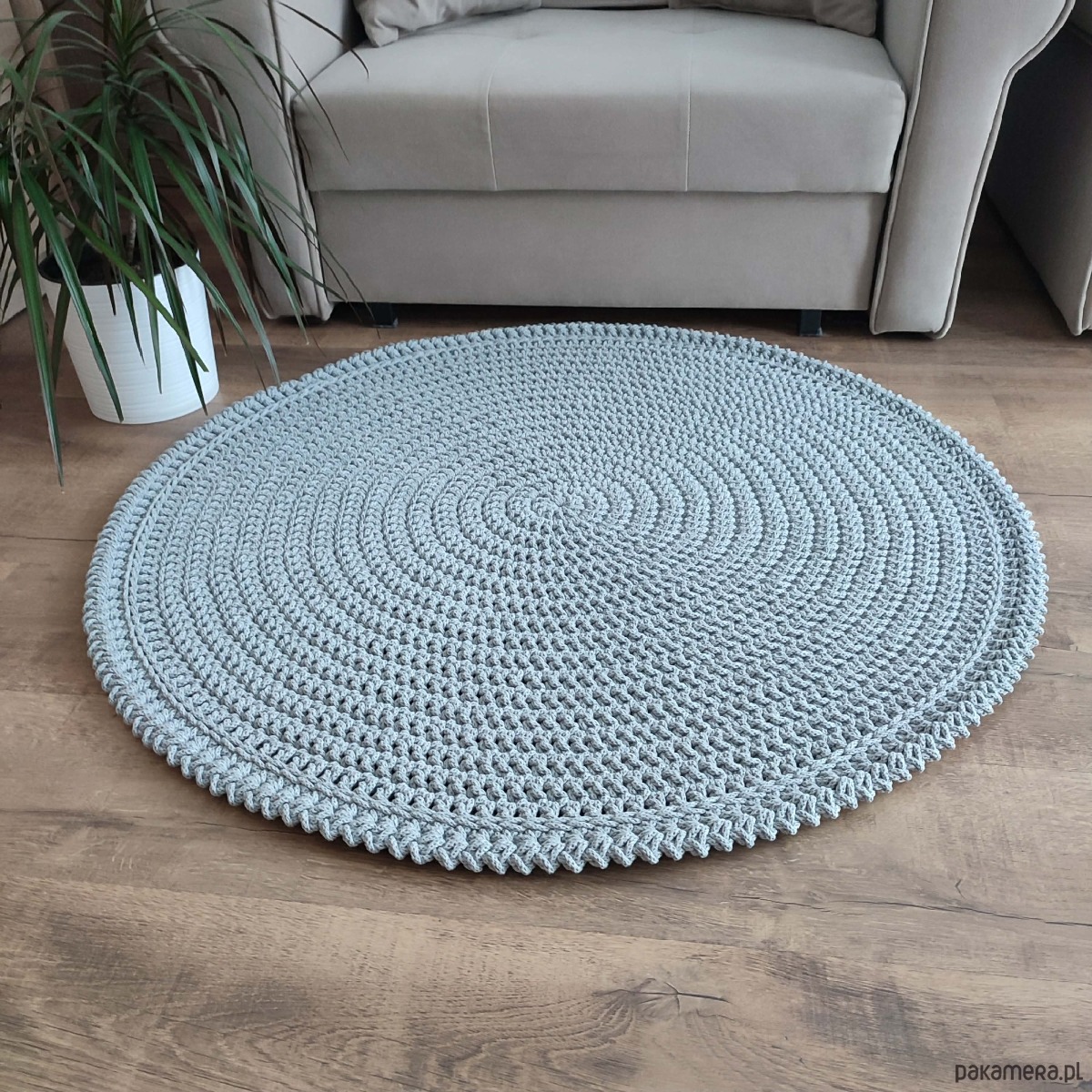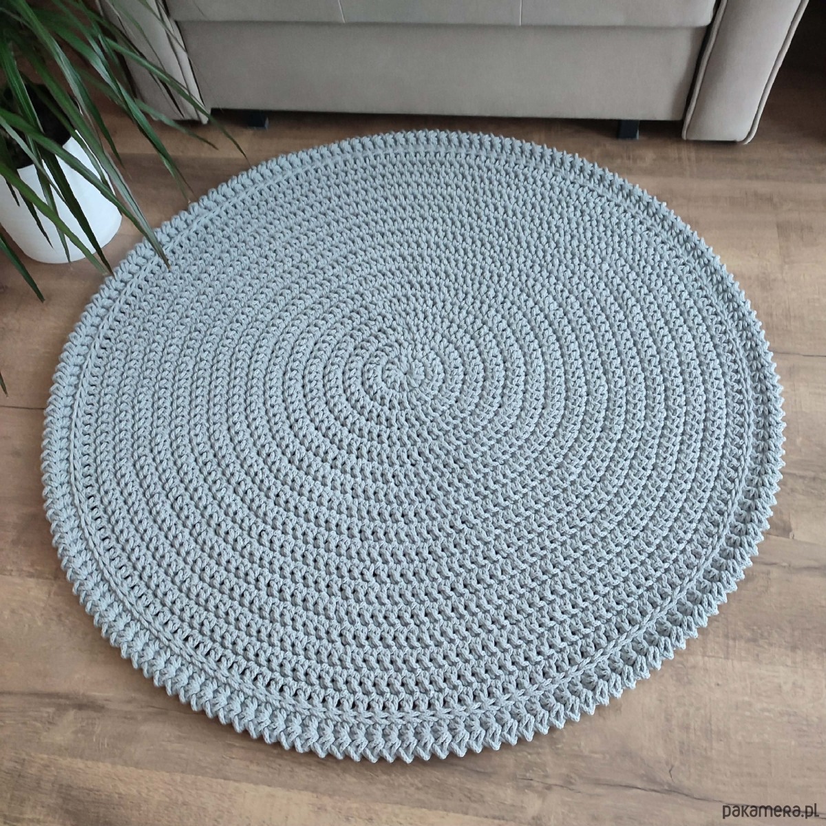 Dywan o średnicy 100cm, wykonany metodą szydełkowania z polskiego sznurka bawełnianego 5mm.