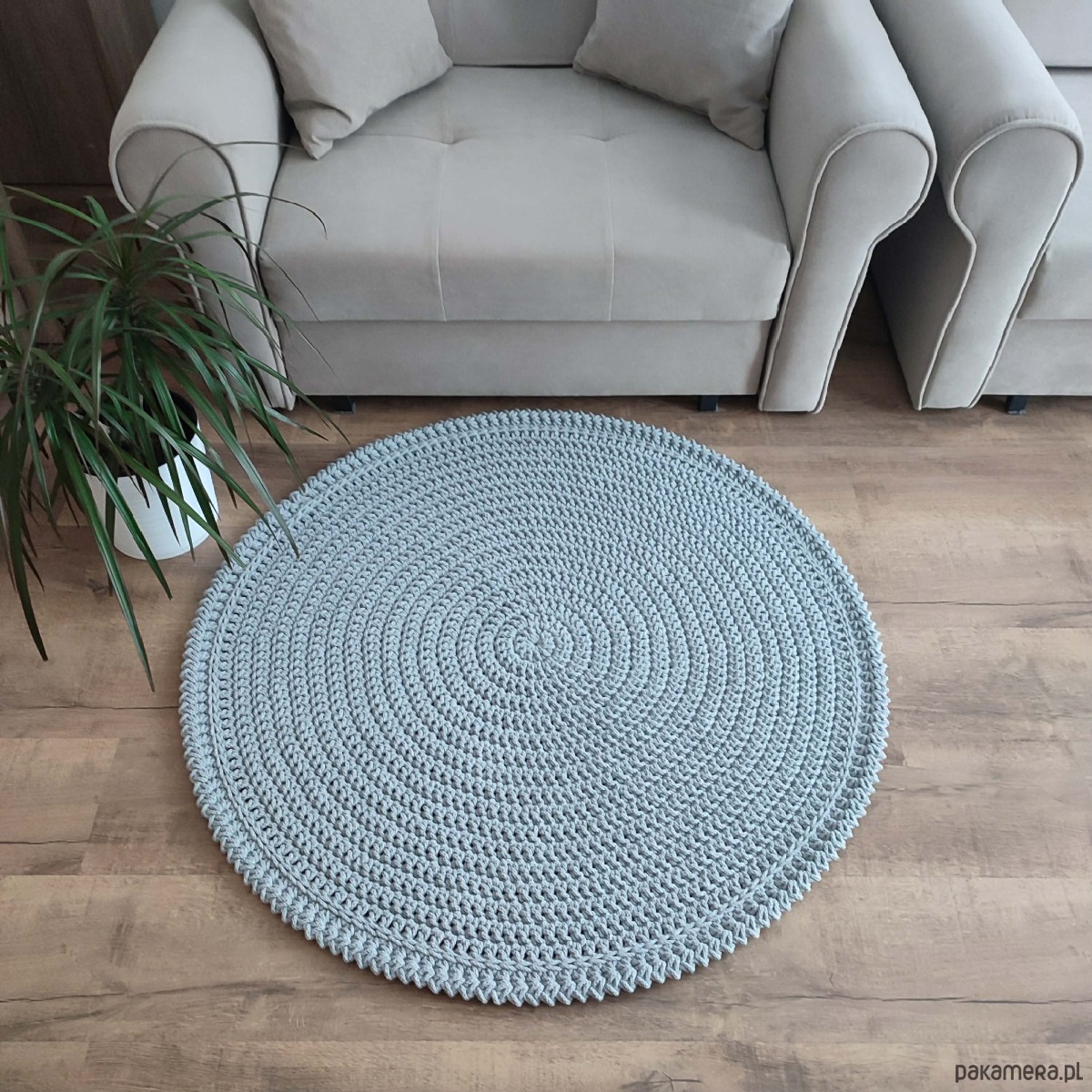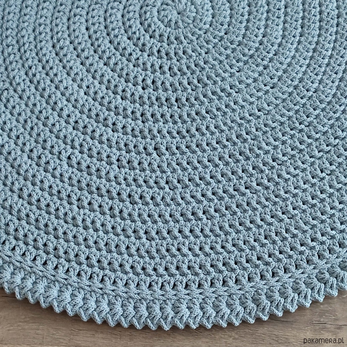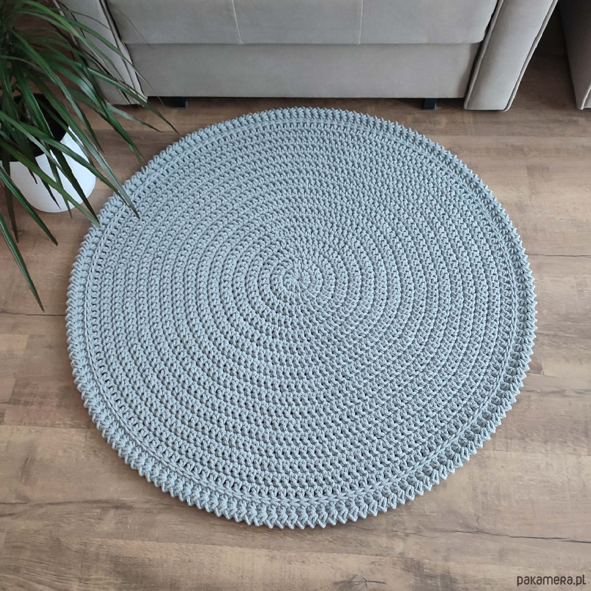 Dywan o średnicy 100cm, wykonany metodą szydełkowania z polskiego sznurka bawełnianego 5mm.