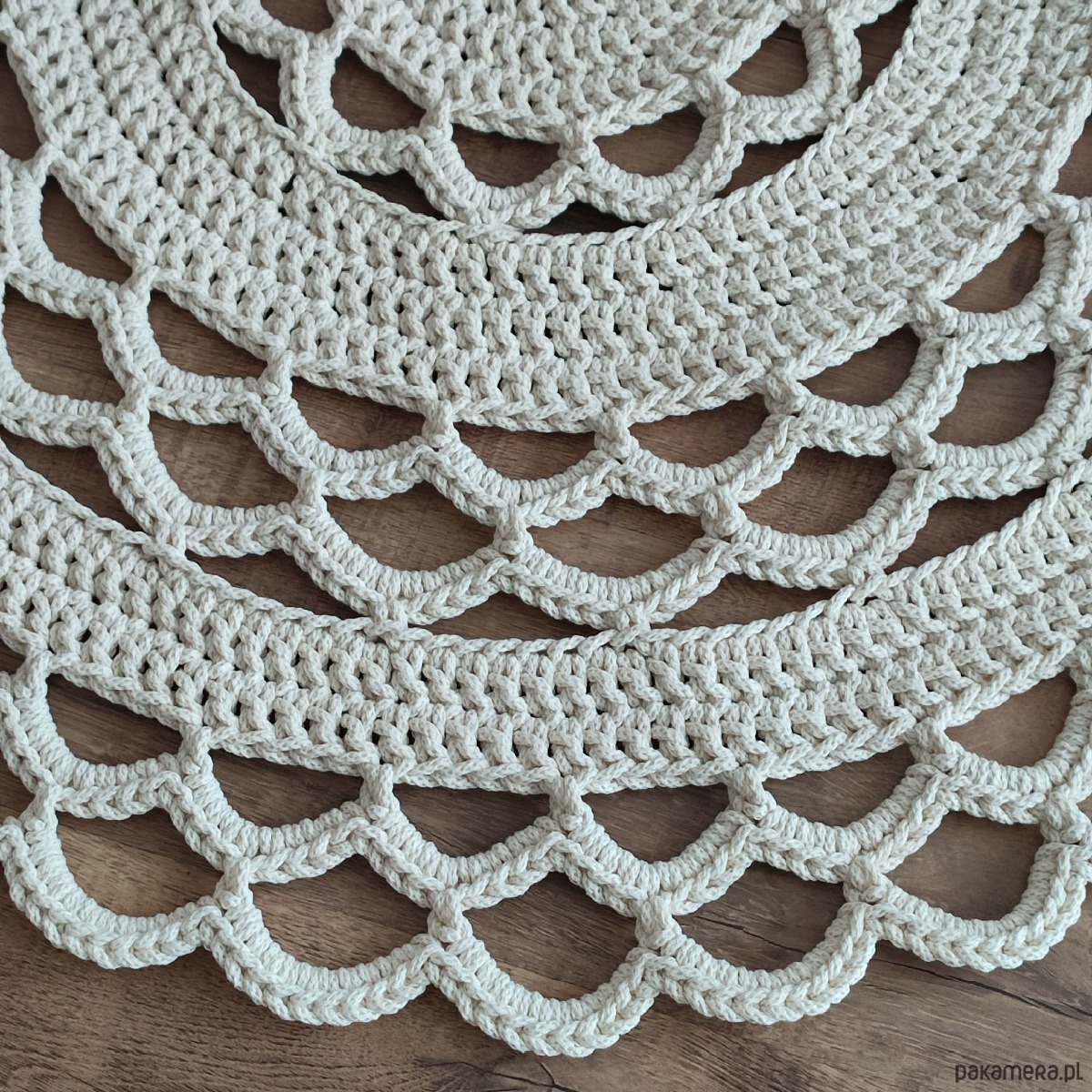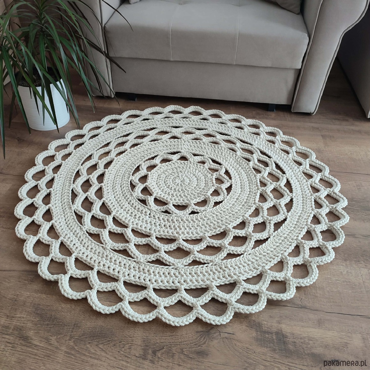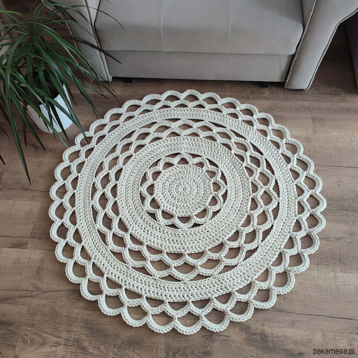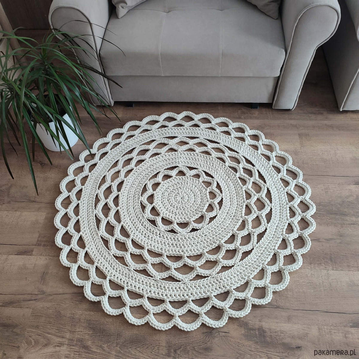 Dywan o średnicy 100cm, wykonany metodą szydełkowania z polskiego sznurka bawełnianego 5mm.