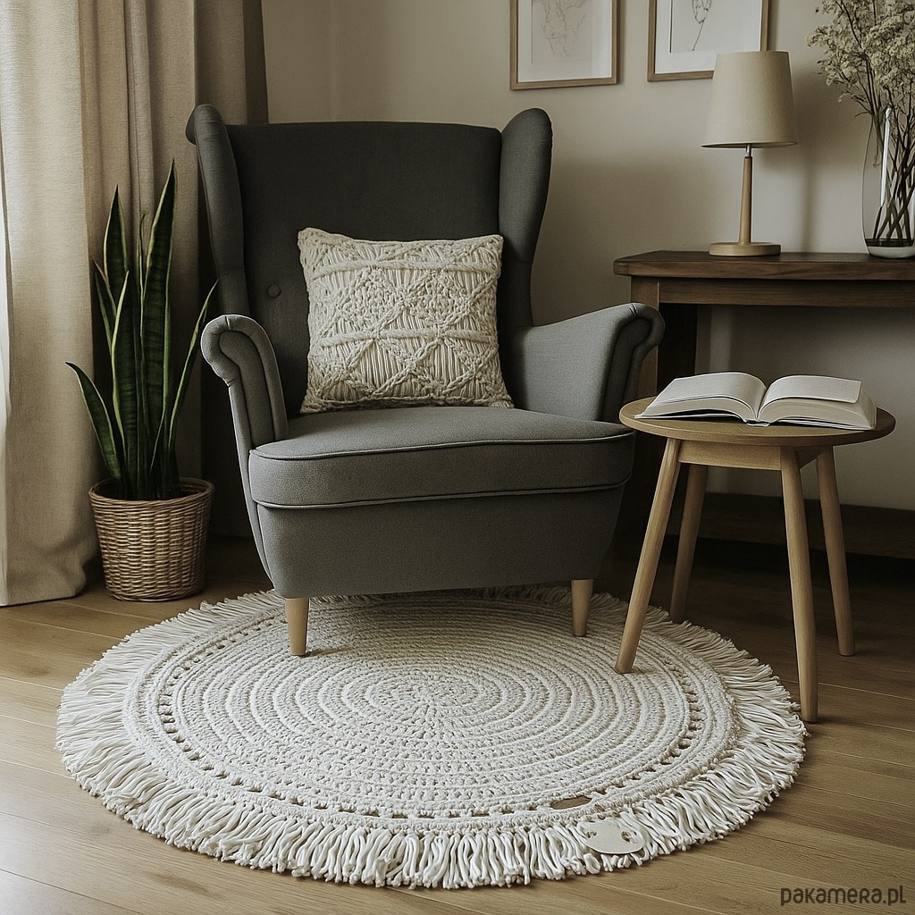• Wzór: okrągły, z dekoracyjnymi frędzlami