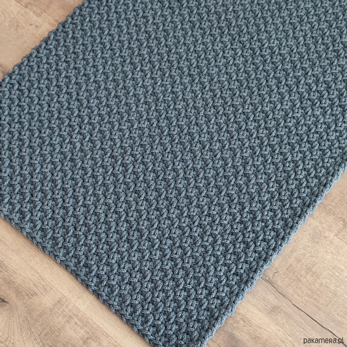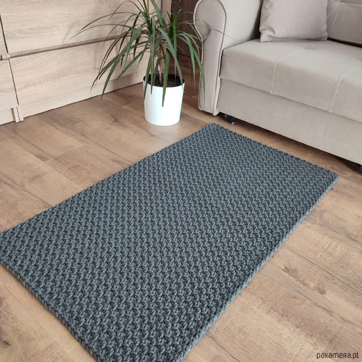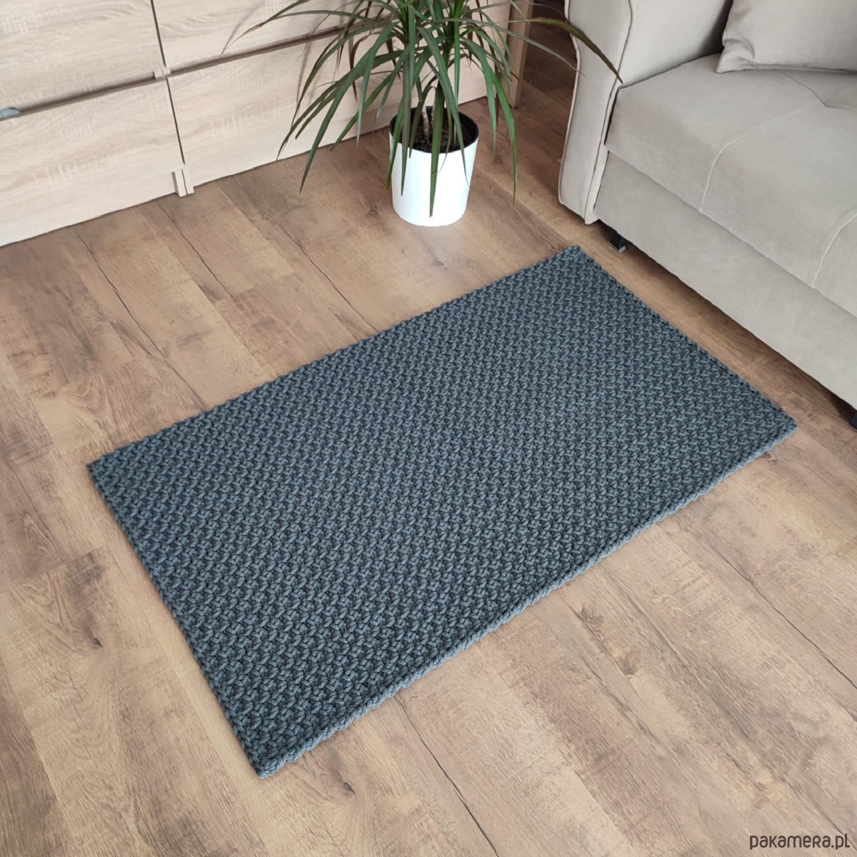 Dywan o wymiarach 90cmx130cm, wykonany metodą szydełkowania z polskiego sznurka bawełnianego 5mm.