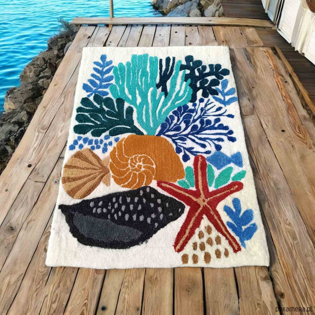 Ten miękki dywan przywołuje wspomnienia wakacji nad oceanem i nad morzem, kiedy można było beztrosko pływać, nurkować i dać się delikatnie kołysać falom. Rafy koralowe, wodorosty i muszle o różnych kształtach. Gdyby tylko te wspomnienia mogły zostać przeniesione do domu w postaci jednego, miękkiego przedmiotu, który ogrzewałby Cię w jesienne i zimowe wieczory i koił myśli. Właśnie taki jest ten dywan. Dzień zaczyna się lepiej, gdy wstajesz z łóżka, a pierwszą rzeczą, której dotykają Twoje stopy, jest miękki, przyjemny włos tego dywanu. I wspomnienia lata.