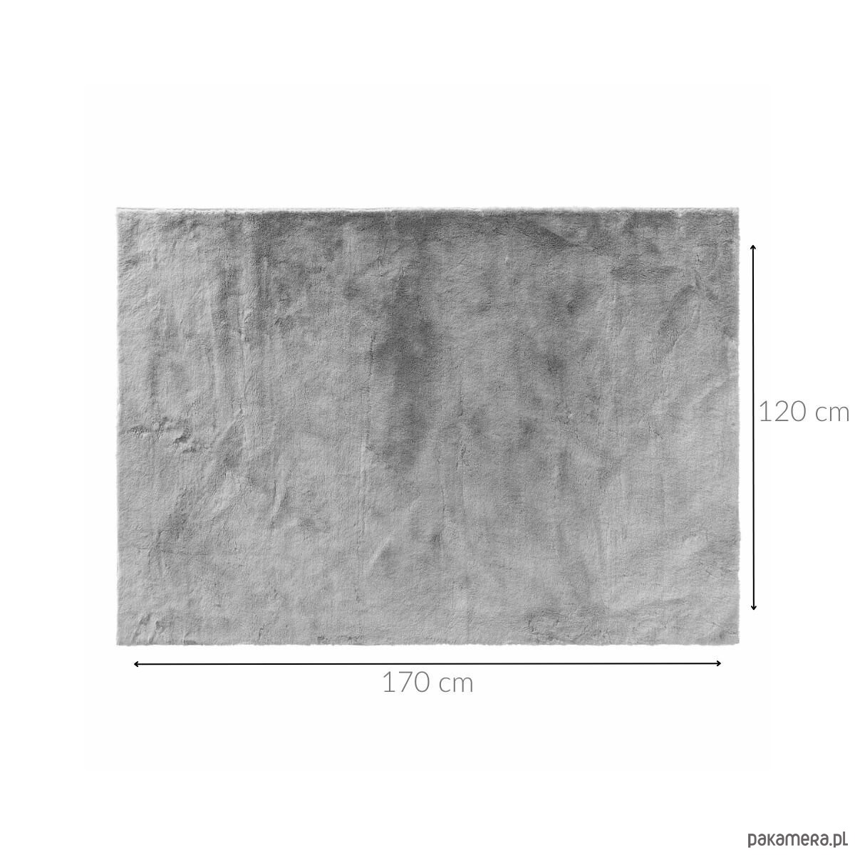 Prostokątny dywan futrzany został wykonany z poliestru. Jest wytrzymały i odporny na uszkodzenia. Jednobarwny, w kolorze szarym, daje uczucie ciepła oraz przytulnego pomieszczenia, w którym leży. Idealny do położenia w salonie, sypialni i pokoju dziecięcym.