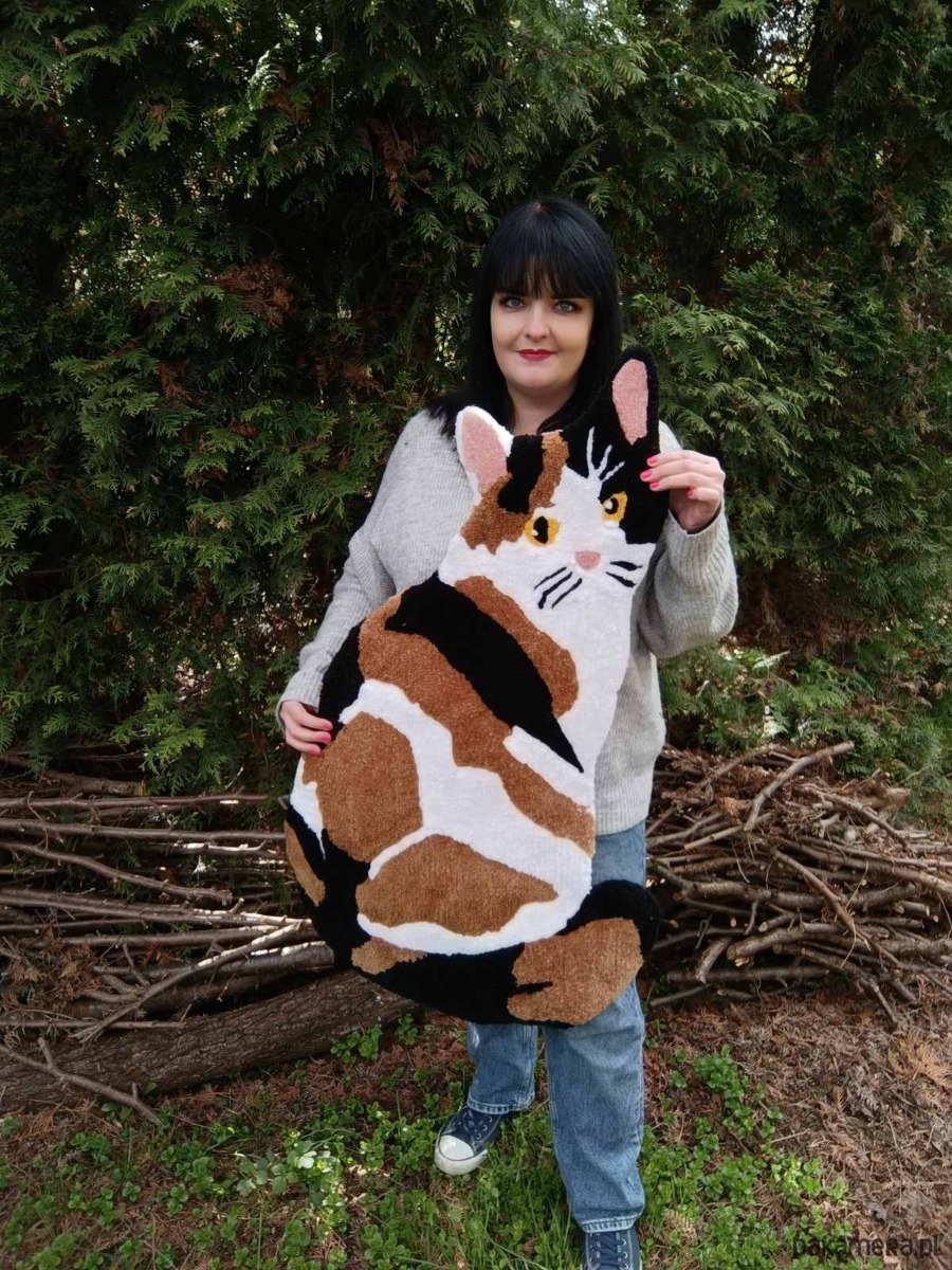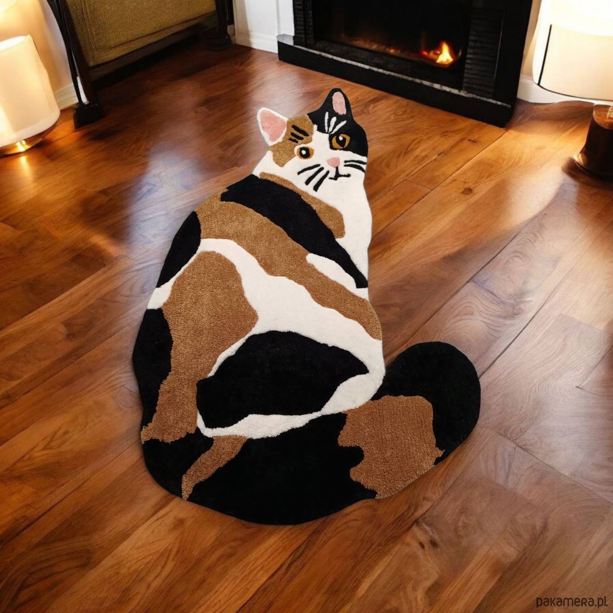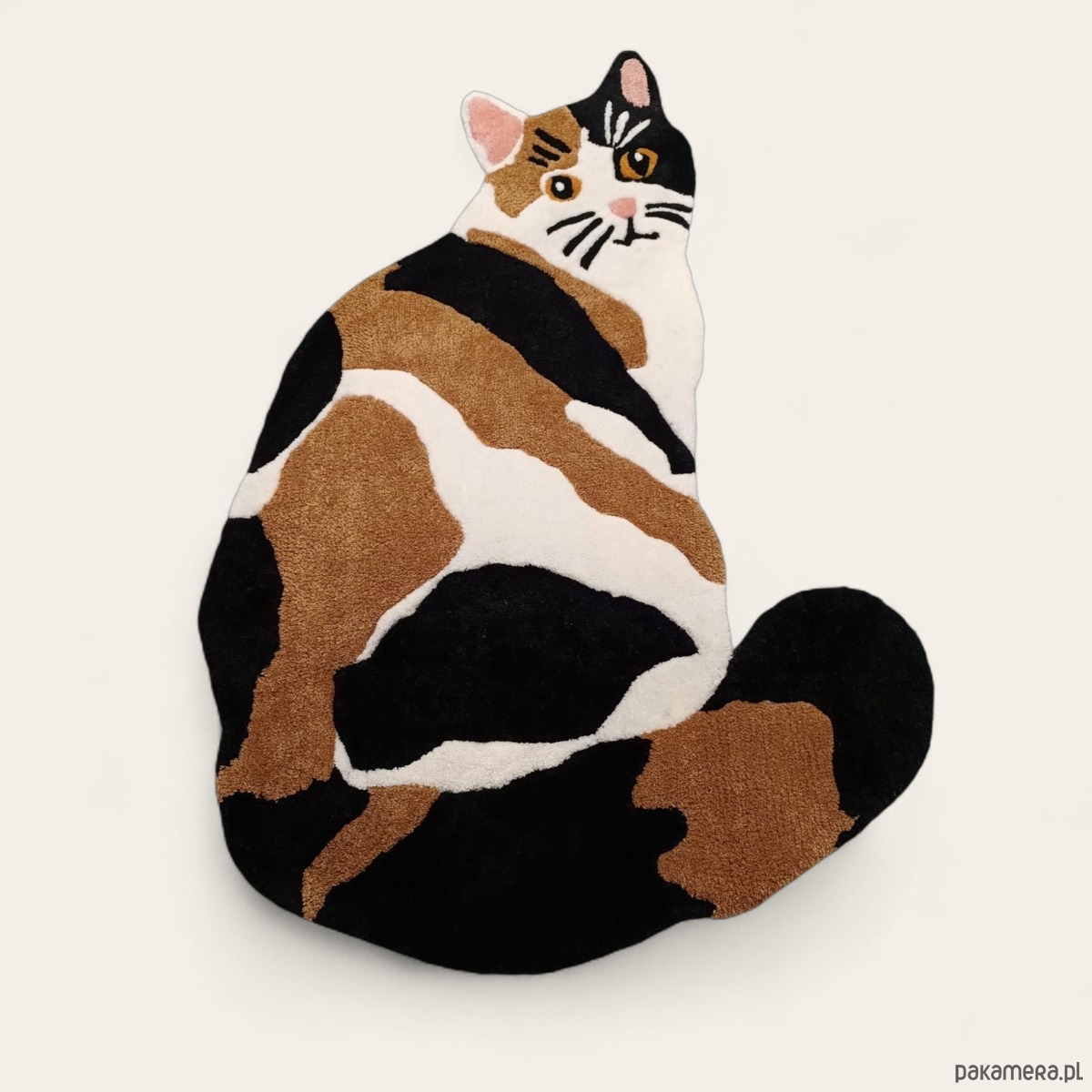 Piękna szylkretowa kotka to uroczy miękki dywan, dostępny w dwóch rozmiarach.