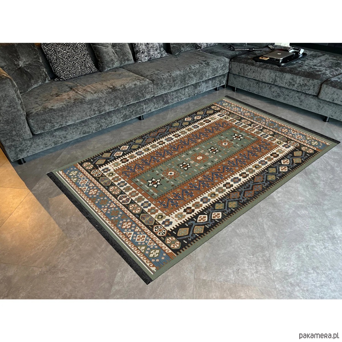 Odkryj bogactwo kolorów i tradycyjny styl z tym dywanem tkanym vintage w wymiarach 120x180 cm! Wykonany z 85% polipropylenu i 15% bawełny, ten dywan zapewnia trwałość i komfort dla Twojego wnętrza. Unikalny wzór etniczny i żywa kolorystyka ożywią Twoją przestrzeń i dodadzą jej charakteru.