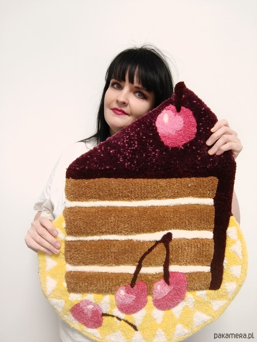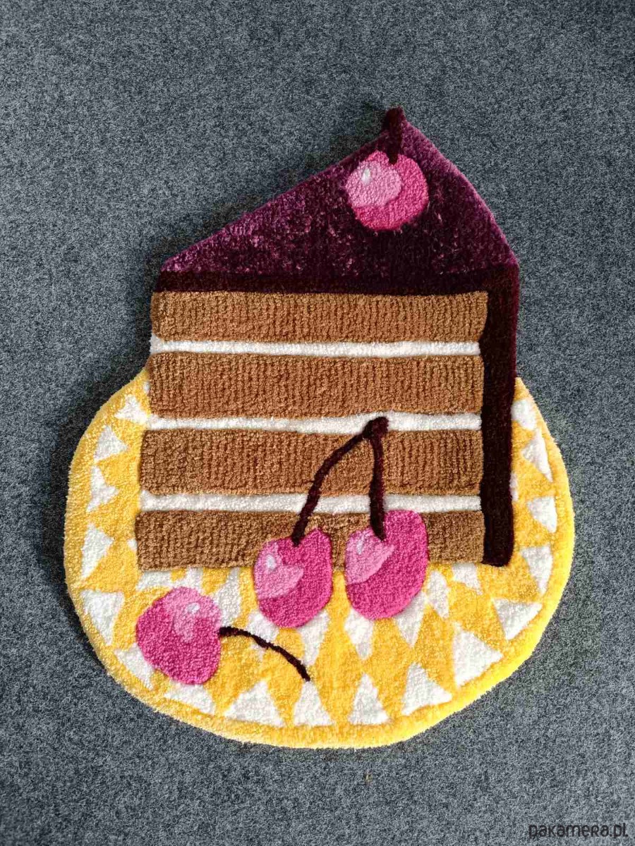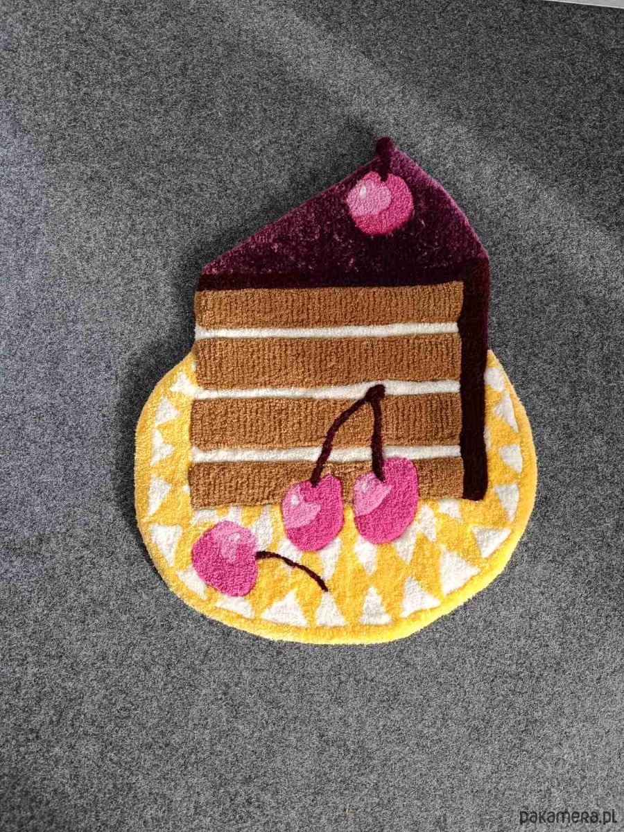 Dywan torcik wiśniowy. Słodki i uroczy. Aż chce się go zjeść :) Jest wspaniałą, miękką ozdobą do domu lub twojego biura czy kawiarni. Z pewnością zaskoczy i zachwyci twoich gości :D