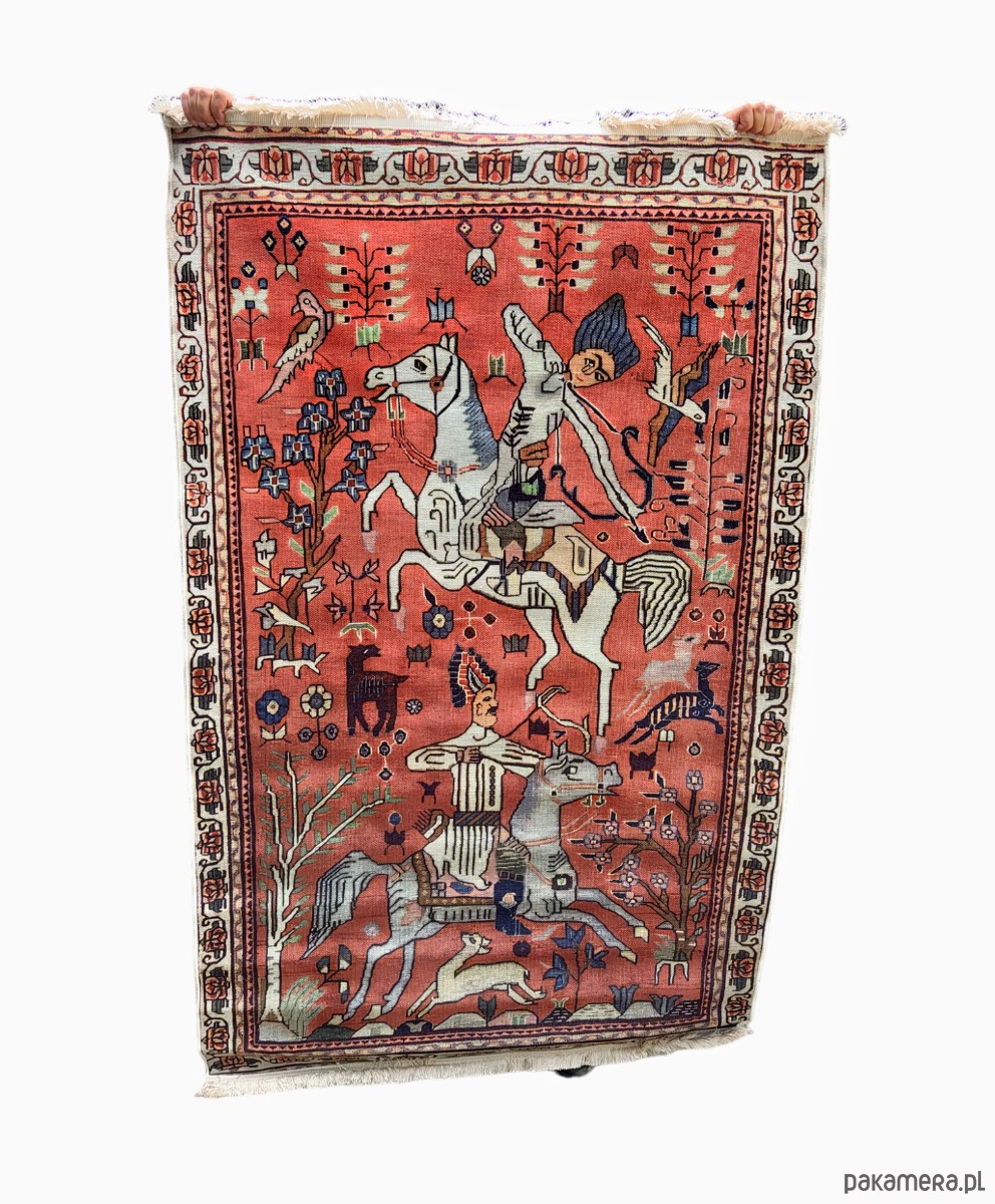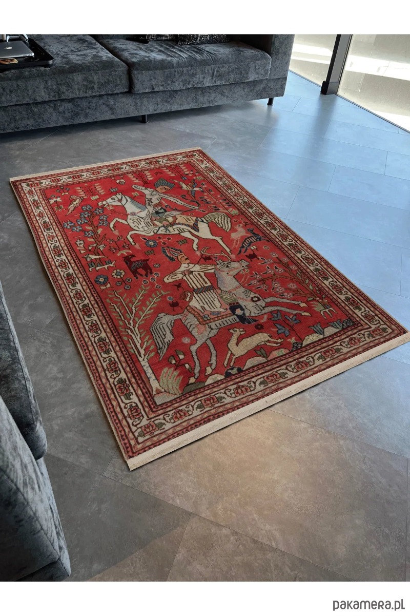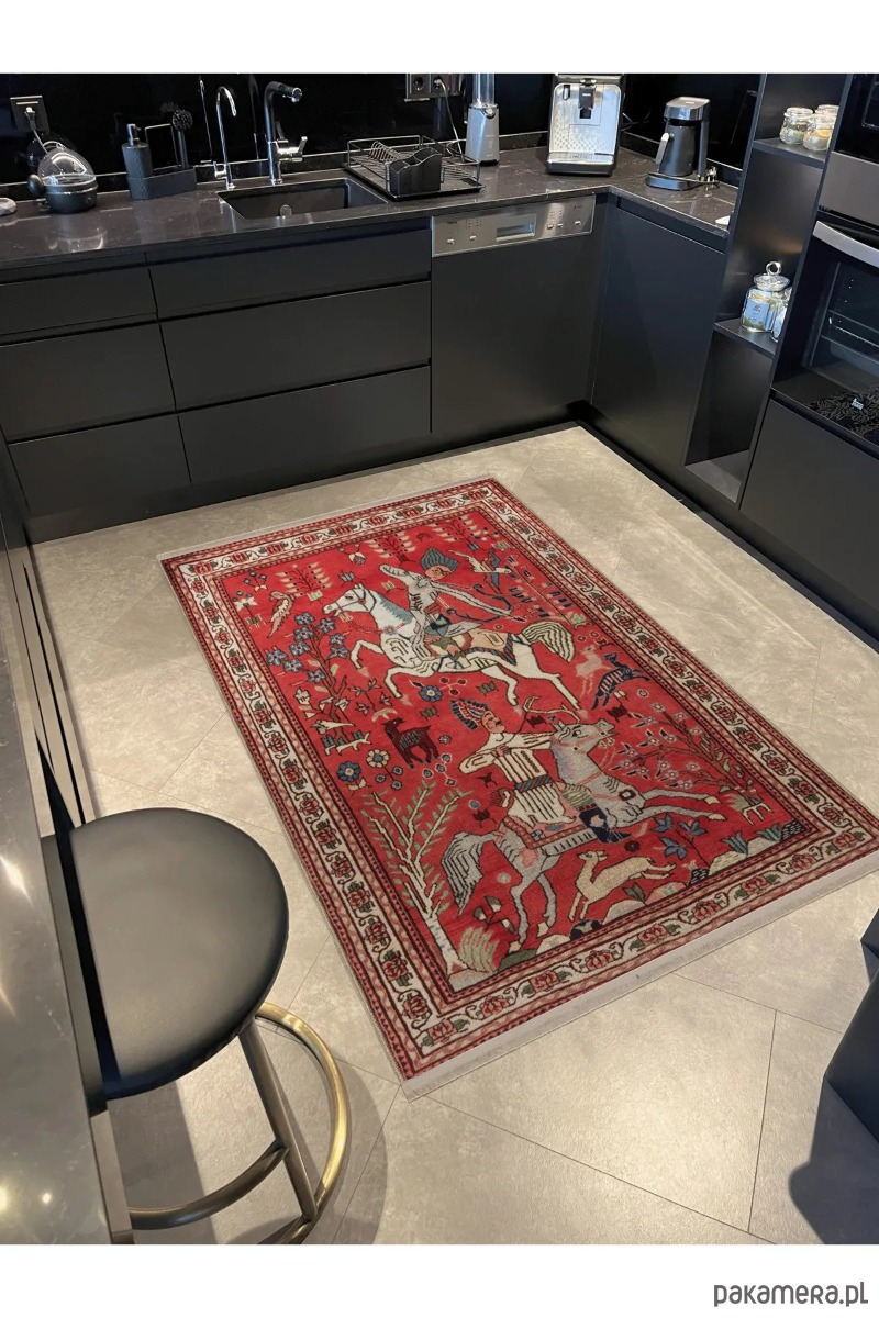 Dywan Vintage w Odcieniach Czerwieni z Wzorem Rycerza na Koniu 120x180 cm