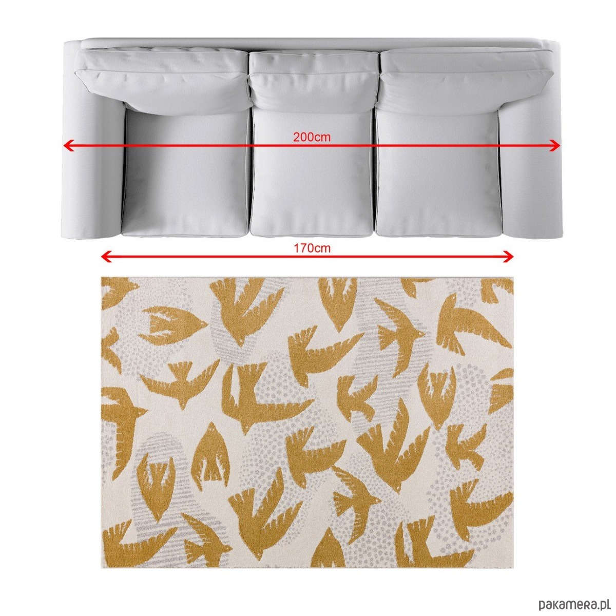 Miękki i przyjemny w dotyku dywan do pokoju dziecka z gęstym runem. Oryginalny, a zarazem neutralny design sprawia, że pasuje zarówno do pokoju dziewczynki jak i chłopca. Doda przytulności wnętrzu, a żółte akcenty na beżowym tle stworzą piękną dekorację.