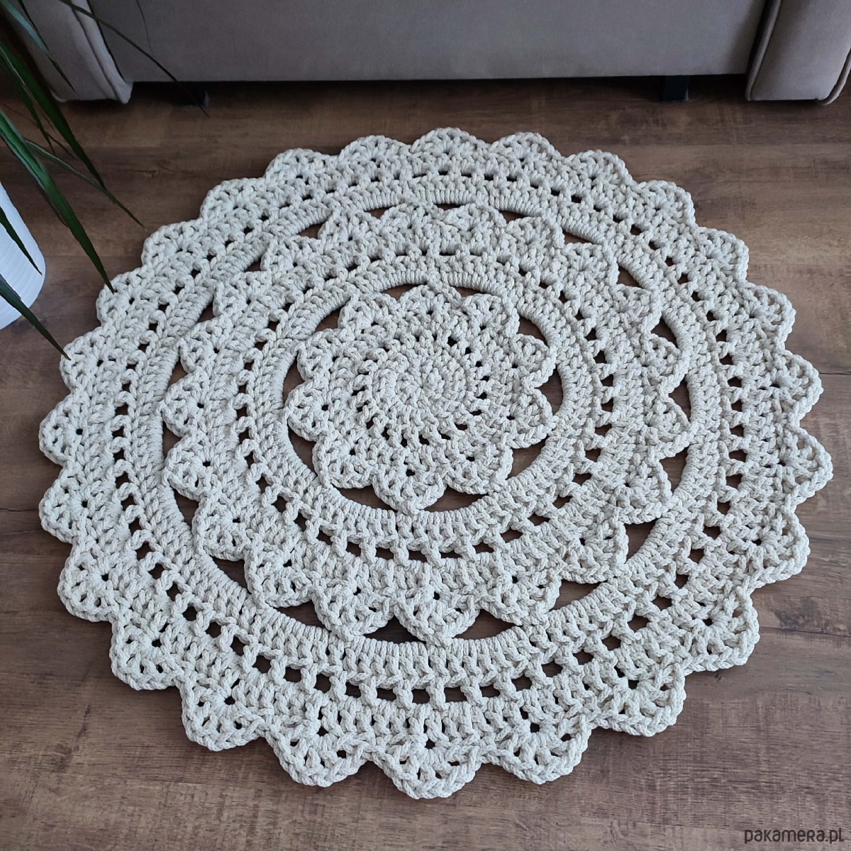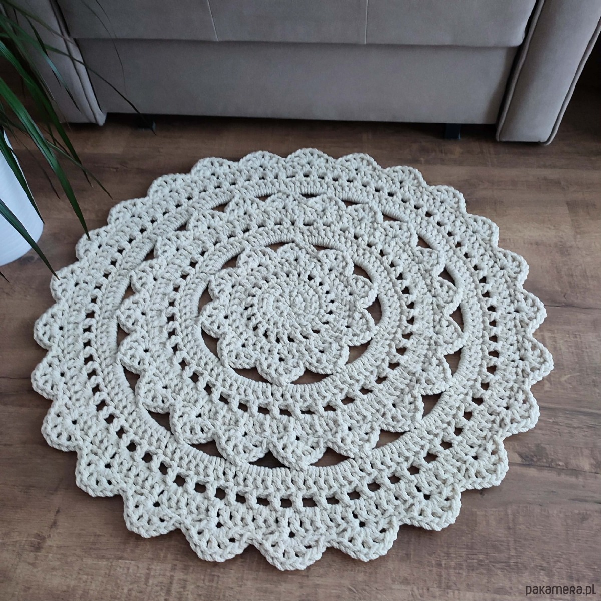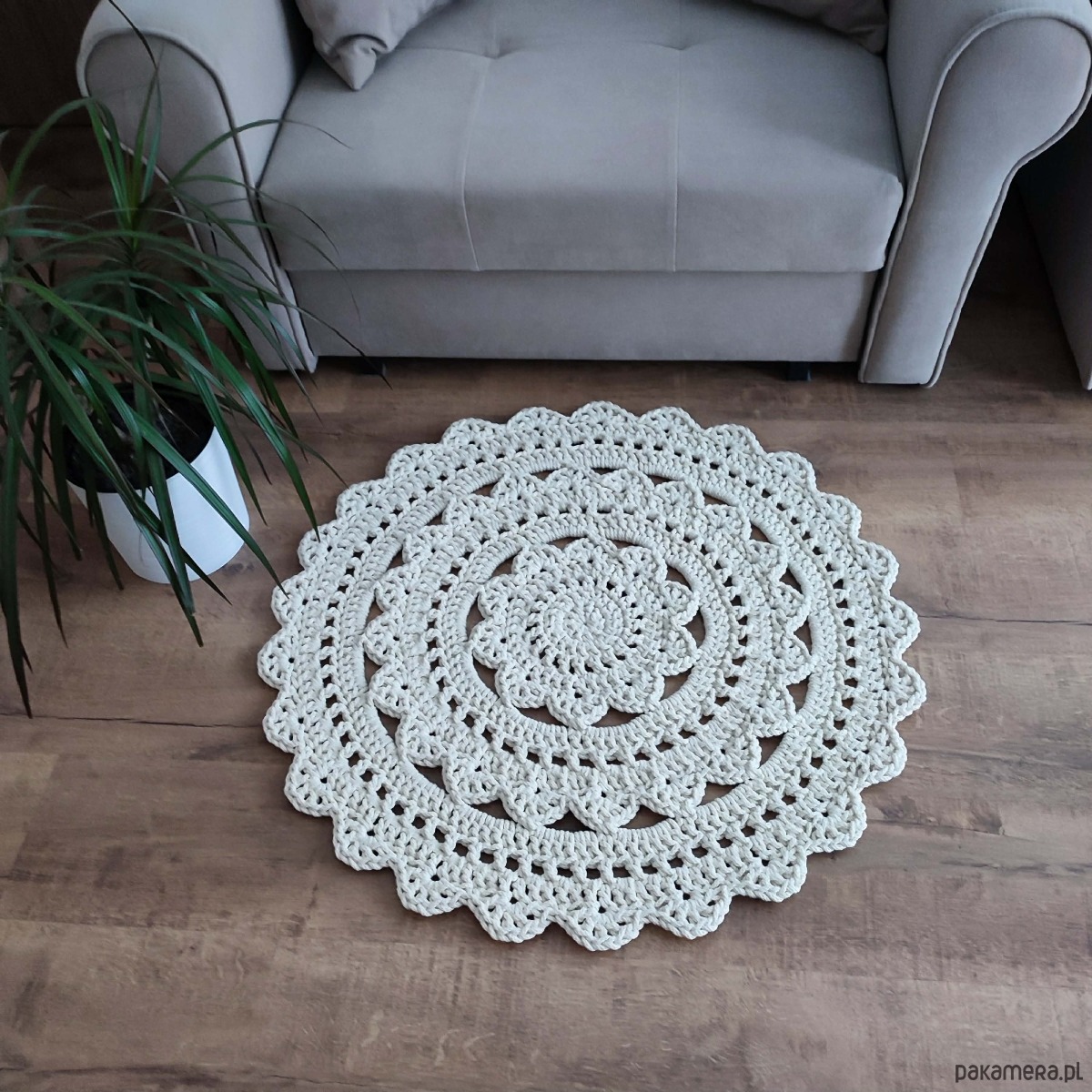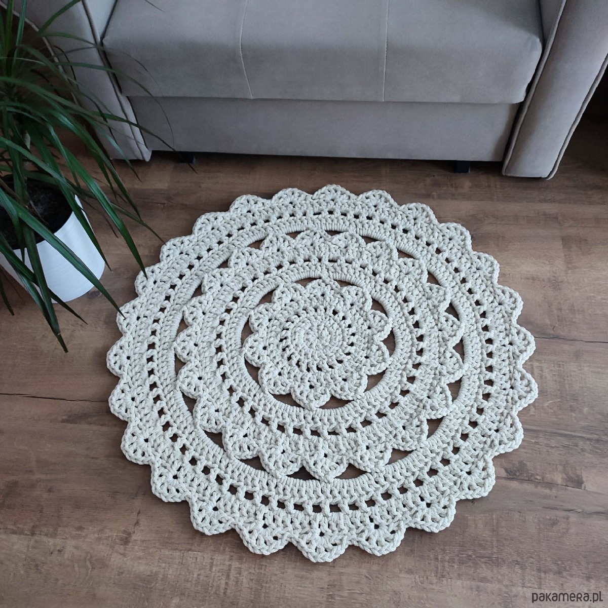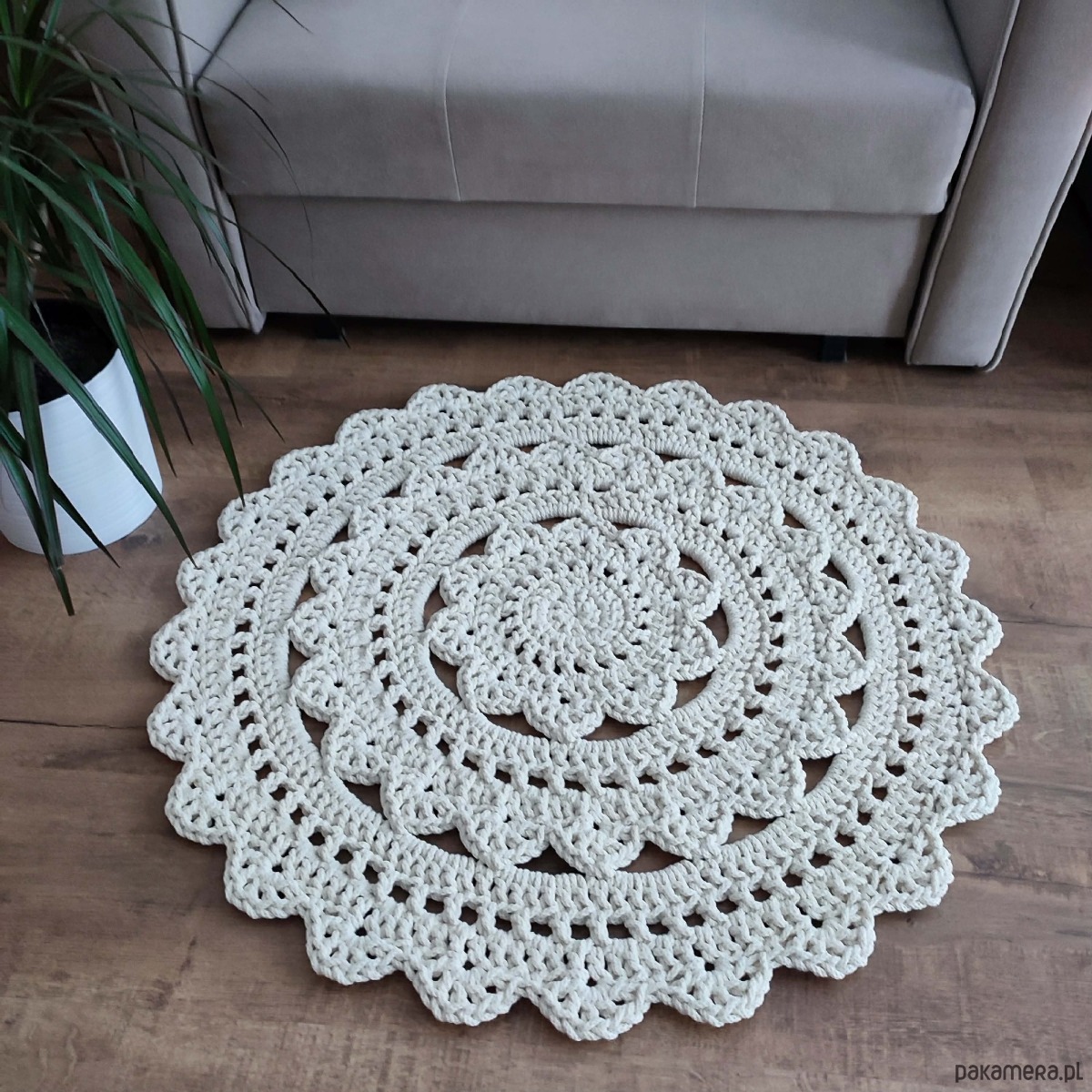 Dywan ze sznurka bawełnianego szydełkowy 80cm