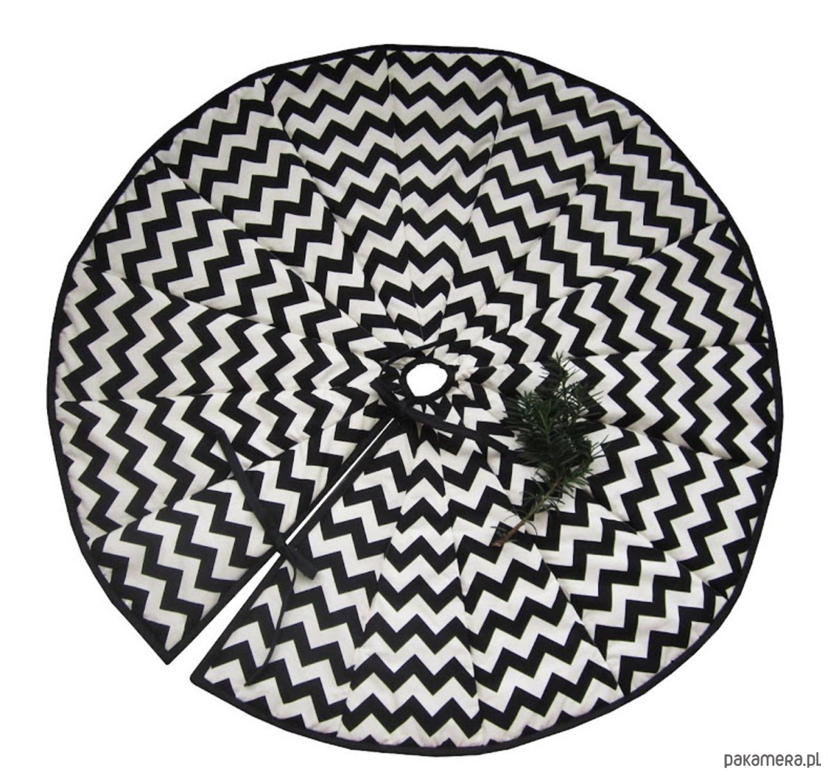 Dywanik stylu minimalistycznym, wykonany z tkanin bawełnianych , wypełniony cienką ociepliną i podszewką przez co jest stabilny, nie ściąga się. Dywanik posiada rozcięcie pozwalając na ukrycie podstawy choinki,. wykończone troczkami do wiązania. Można ją również użyć jako zwykły dywanik pod choinkę, na którym się ją stawia . Ma średnicę 95 cm, a więc pomieści dużo prezentów :))