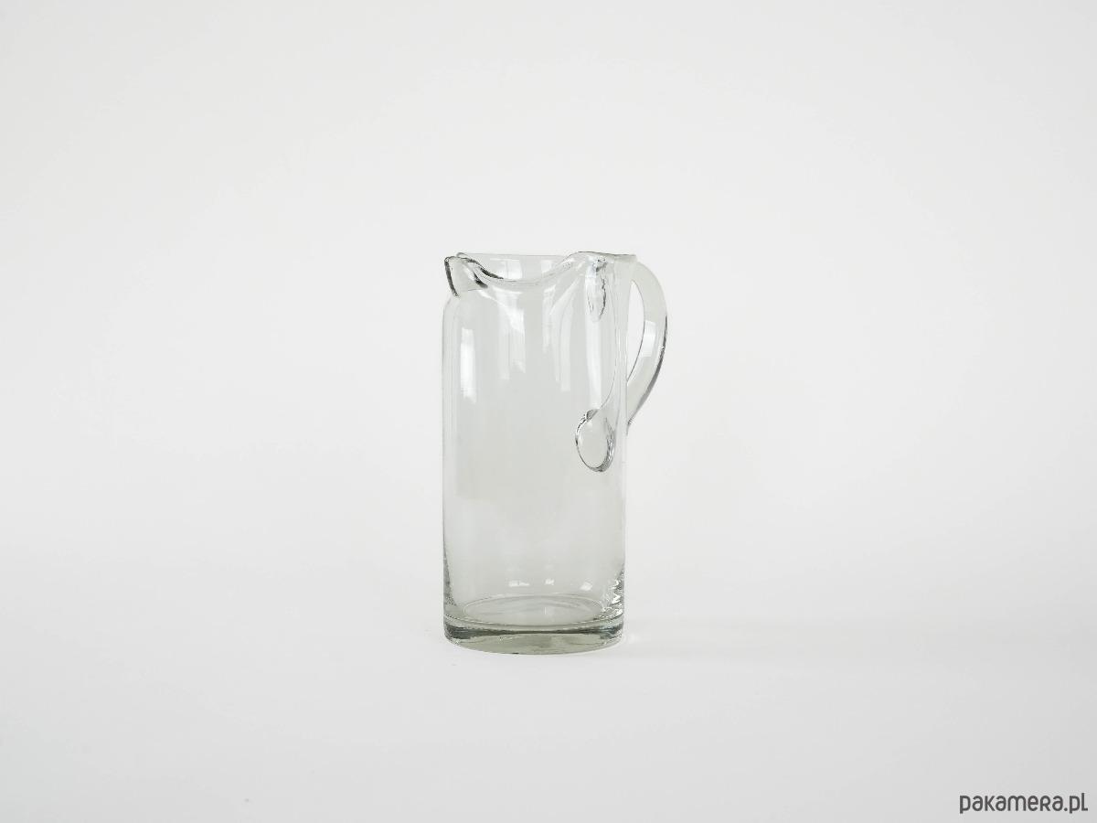 O czystej, cylindrycznej formie z wyraźnie zarysowanym dziobkiem i elegancko wyprofilowanym uchwytem. Prosty, funkcjonalny design charakterystyczny dla duńskiego szkła użytkowego z połowy XX wieku. Idealny zarówno do serwowania napojów, jak i jako dekoracyjny wazon w stylu Scandinavian modern.