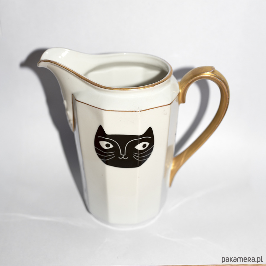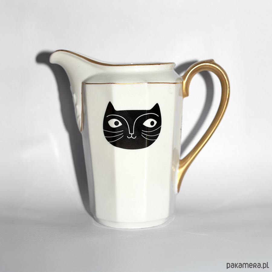Porcelanowy dzbanuszek z kotem. Stworzony w duchu zero waste i upcykling – pochodzi z drugiej ręki. Kiedyś przez kogoś używany, później zapomniany, teraz ma szansę na nowy dom! Kupując przedmioty od Empe dbasz o naszą planetę ♥