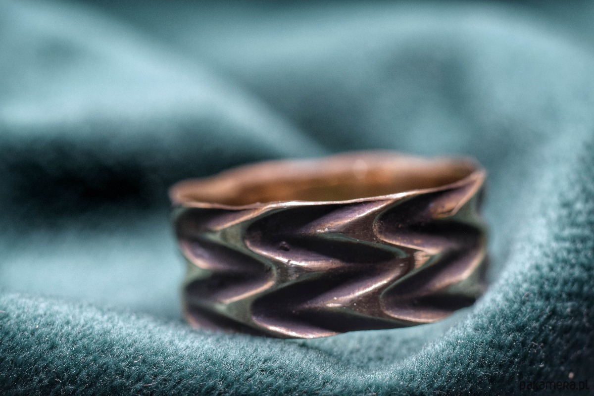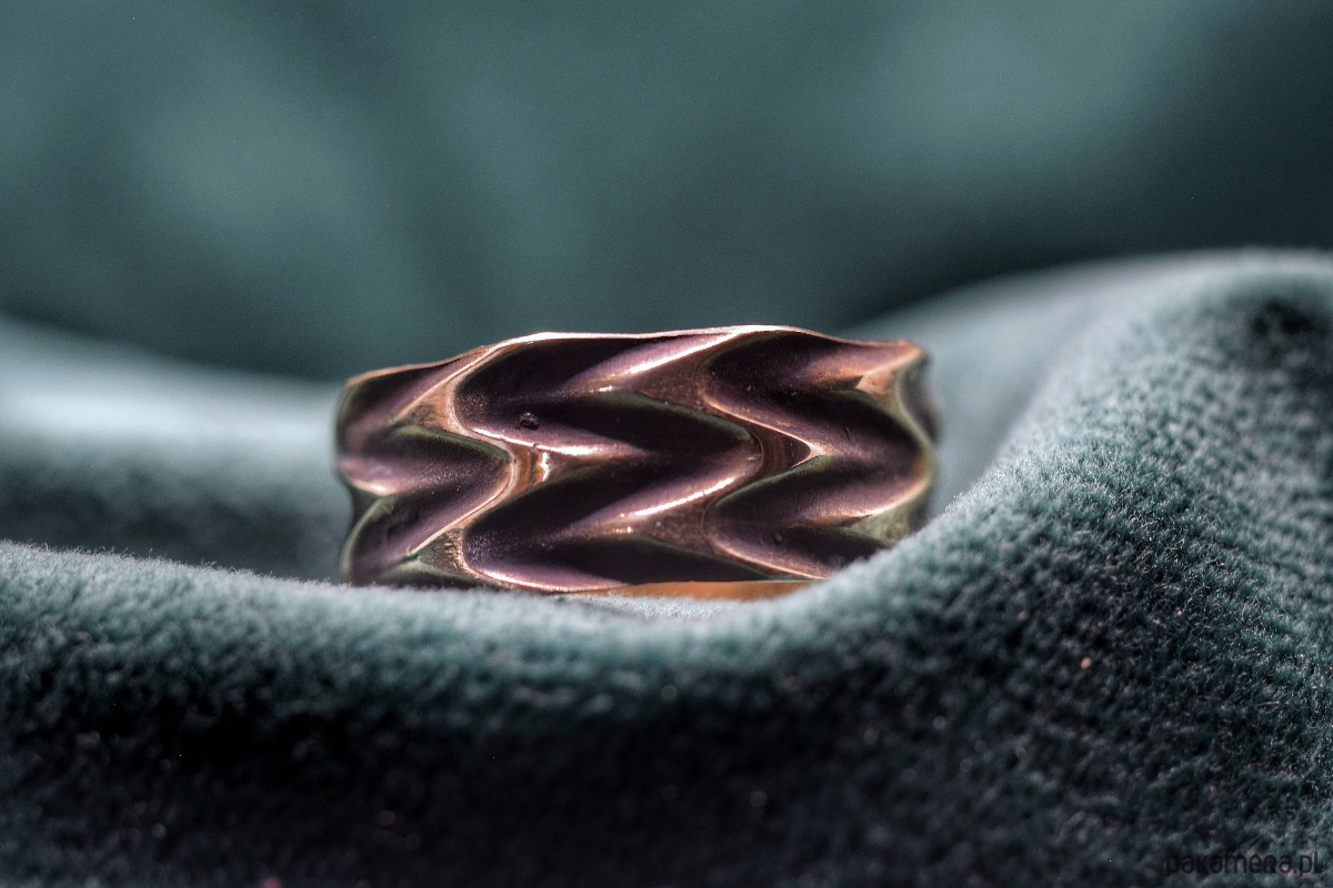 Dzeta - Pierścień z linii geometrycznej z brązu w wersji z patyną