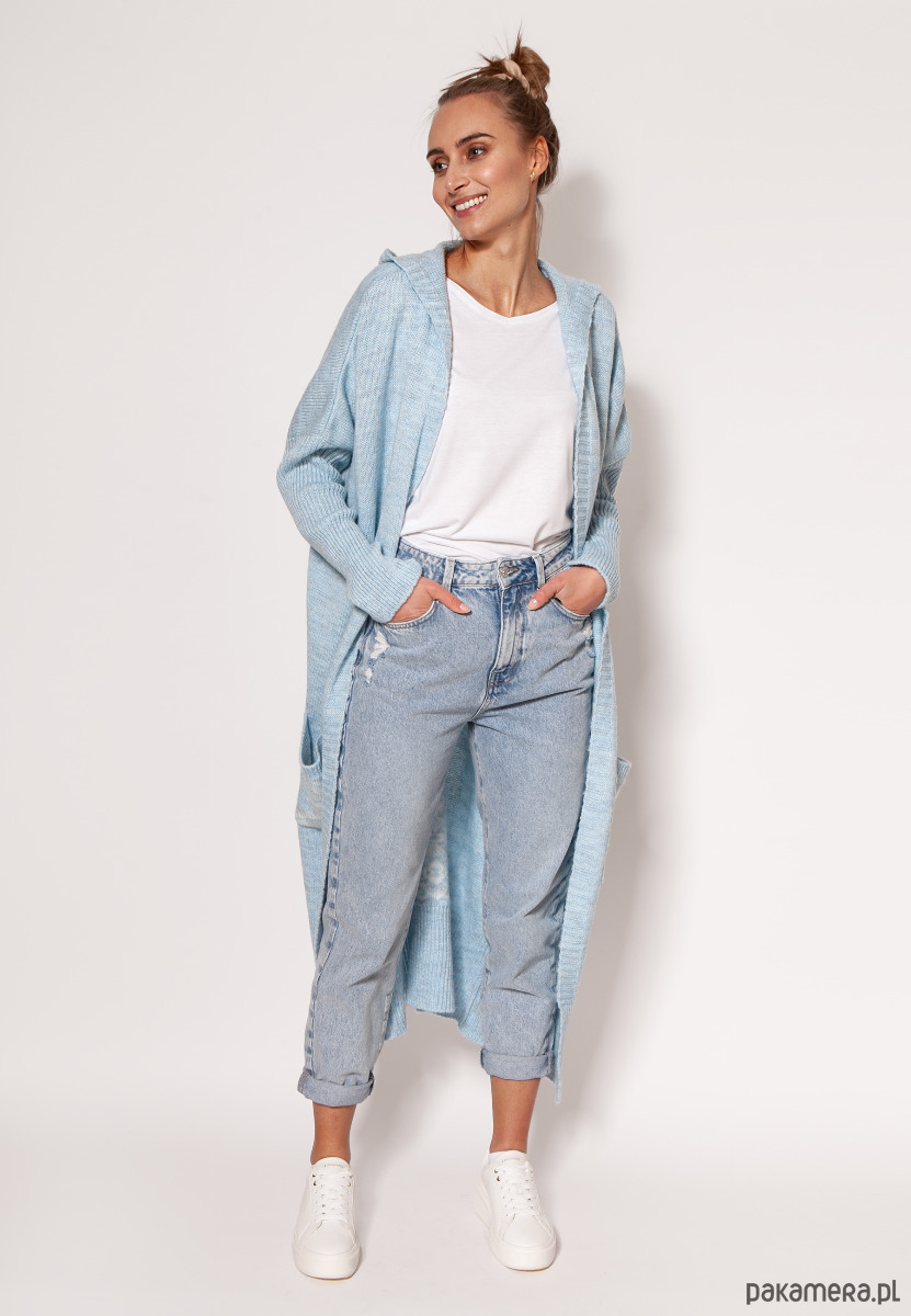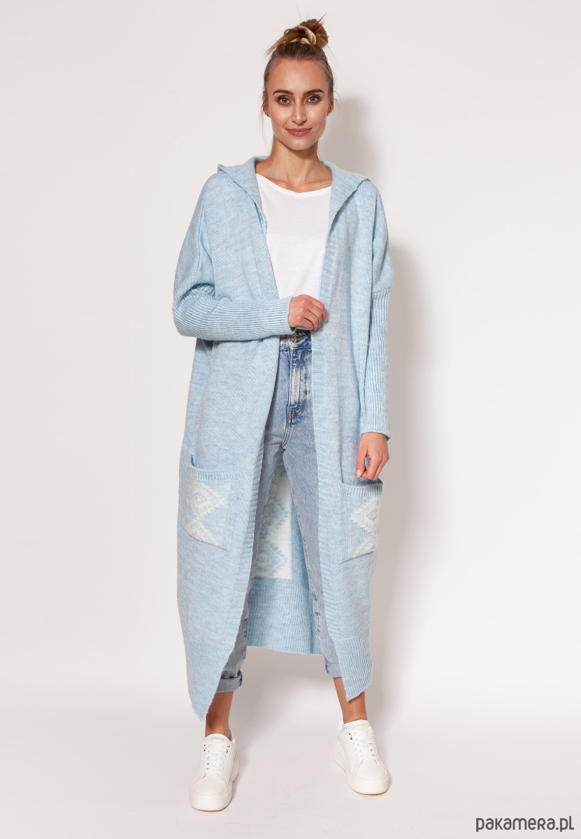 Dzianinowy płaszcz z kapturem - PA020 błękit MKM