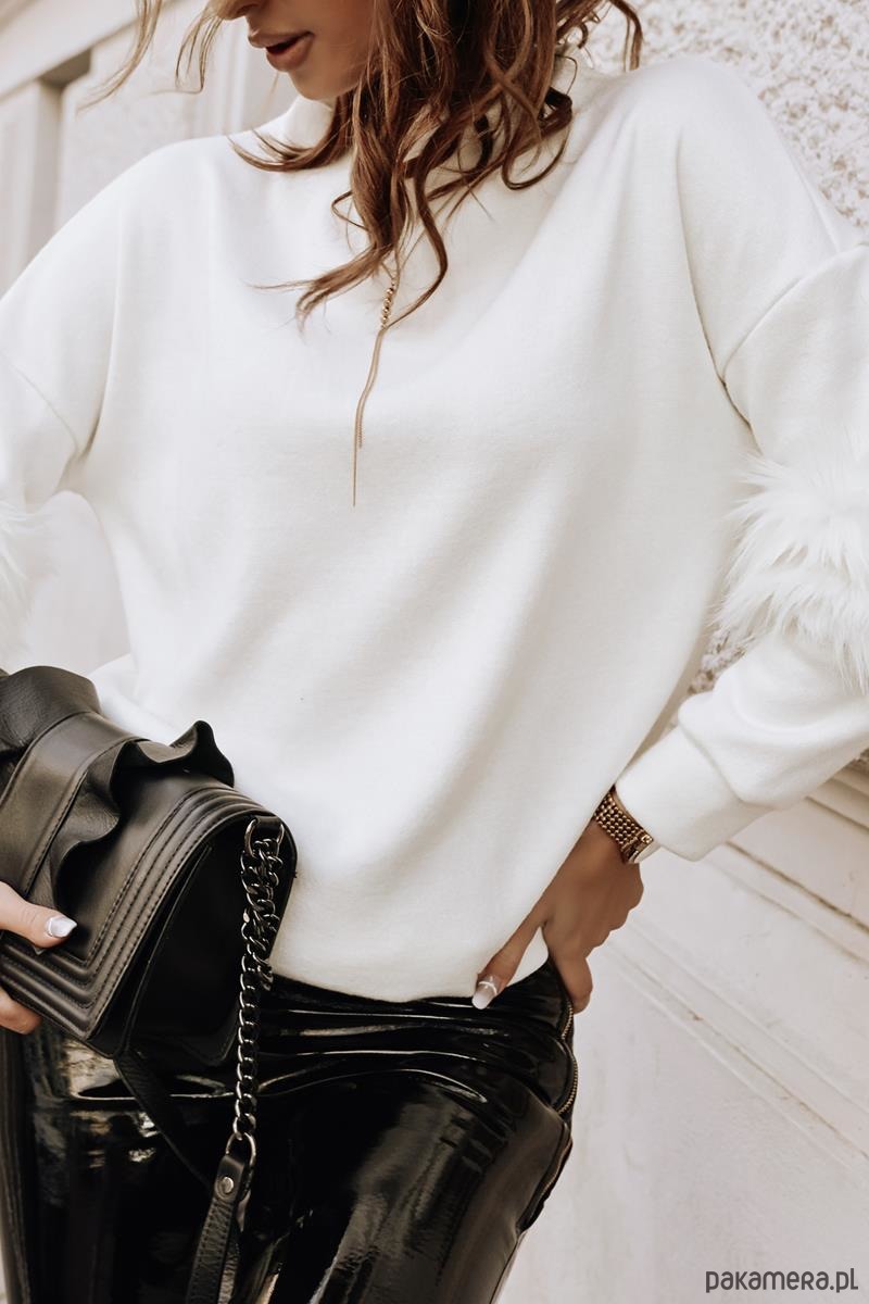 Sweter oversize, wykonany z miękkiej i przyjemnej dzianiny. Na rękawach naszyte wysokiej jakości sztuczne futerko typu lis.