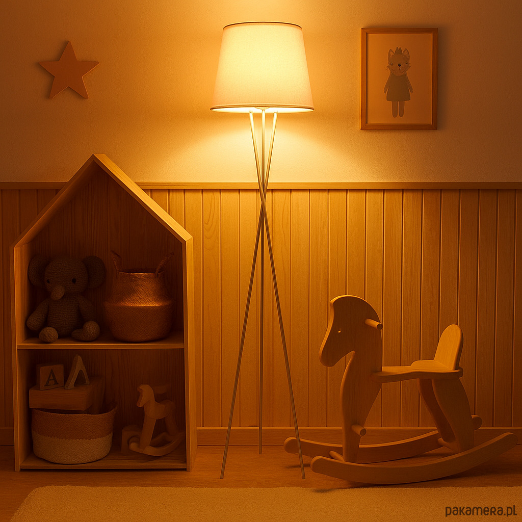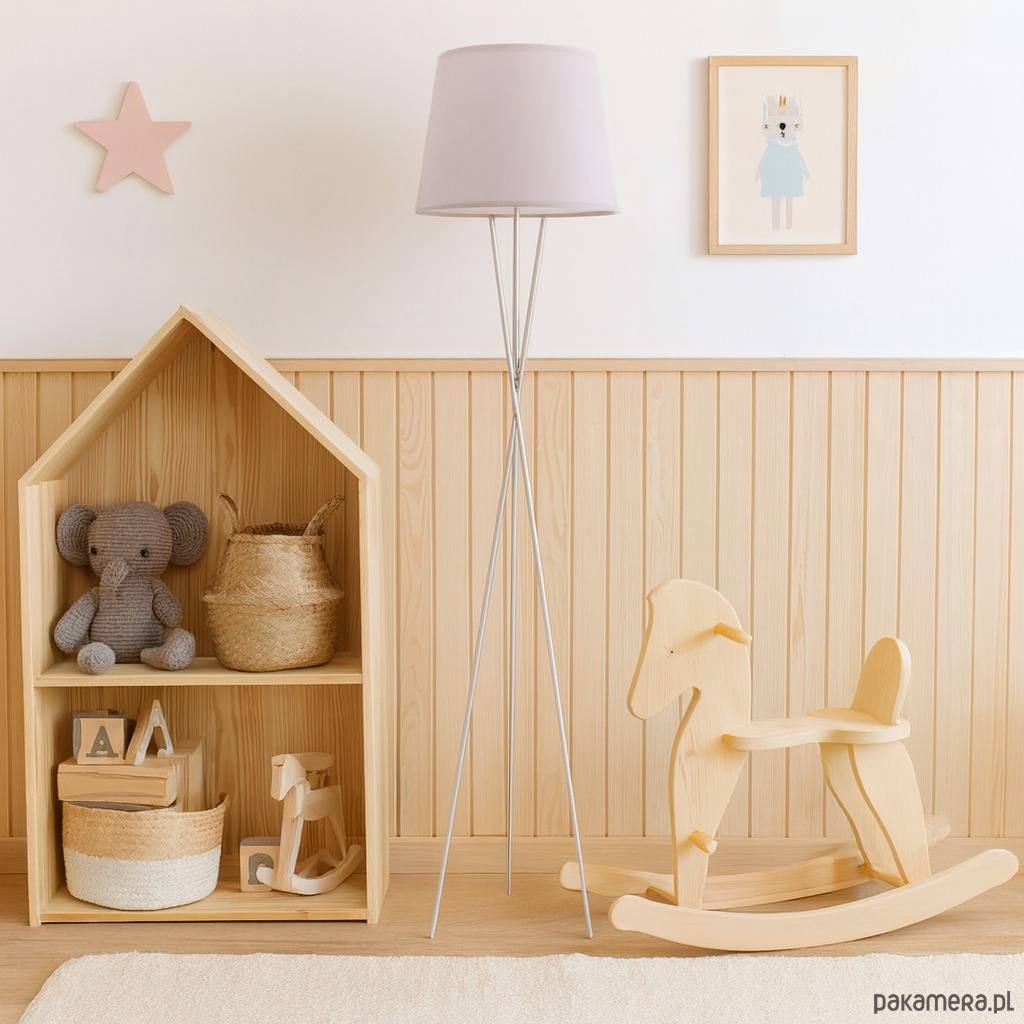 Coraz częściej decydujemy się na dodatkowe oświetlenie w pokojach naszych pociech. Takie rozwiązania jak lampy stojące, perfekcyjnie sprawdzają się w roli wieczornych współtowarzyszy naszych dzieci. Oferowany przez nas model lampy stojącej TOKIO zachęca nie tylko korzyściami użytkowania ale także swoimi walorami estetycznymi. Lampa składa się z trzech skrzyżowanych ze sobą nóżek a jej szczyt zwieńczony został stożkowym abażurem, który dostępny jest w pastelowych kolorach. Delikatne barwy lampy będą działać na Twoje dziecko uspokajająco.