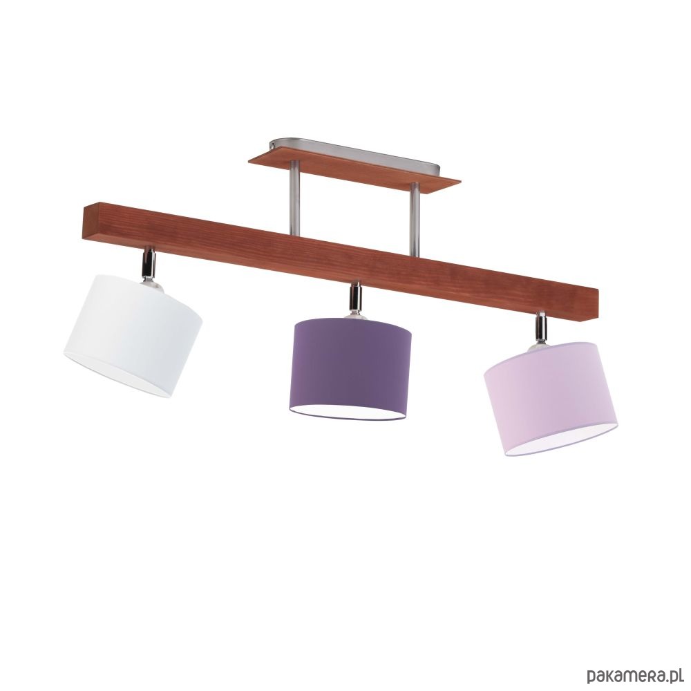 Lampa sufitowa HOLLYWOOD to idealna propozycja do wnętrz dziecięcych, w których liczy się nie tylko praktyczność ale i kolorowy przyciągający oko design! Oświetlenie składa się z drewnianej podsufitki oraz trzech fikuśnych abażurów w słodkich barwach. Niesamowitym atutem tej lampy jest fakt, że kolor każdego ze wspomnianych kloszy może być inny! Lampa dzięki temu staje się jeszcze bardziej kolorowa a co za tym idzie jeszcze lepiej pasuje do wnętrz urządzonych w sposób dziecięcy. Osłony żarówek dodatkowo osadzone są na przegubach – lampa zyskuje w ten sposób na funkcjonalności.