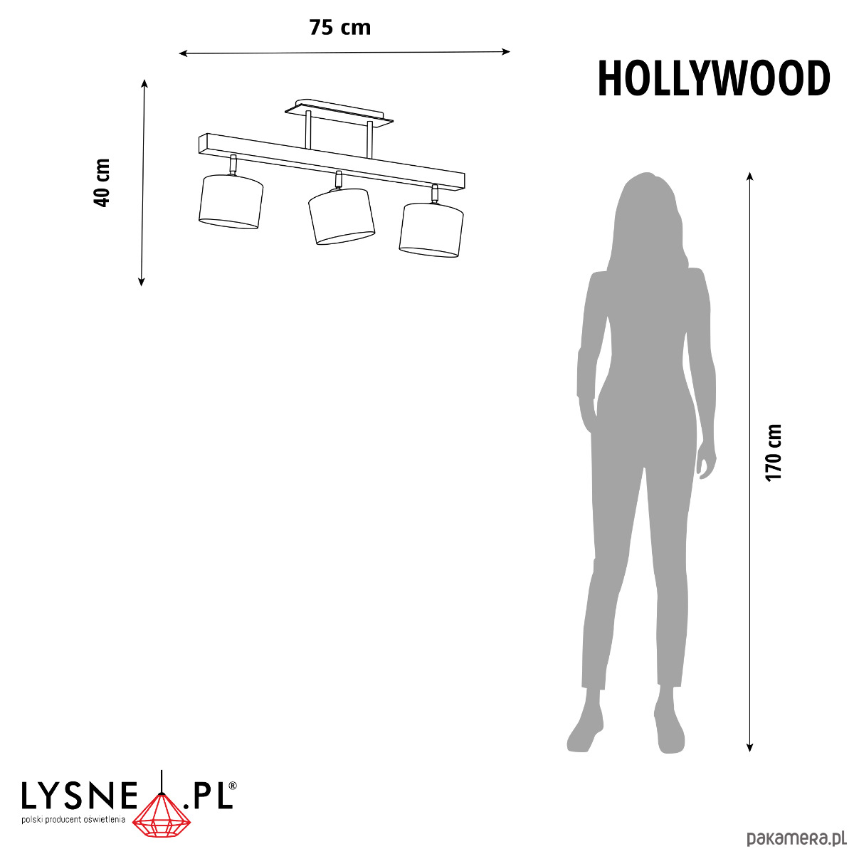 Wymiary lampy: wysokość - 40 cm, szerokość - 75 cm