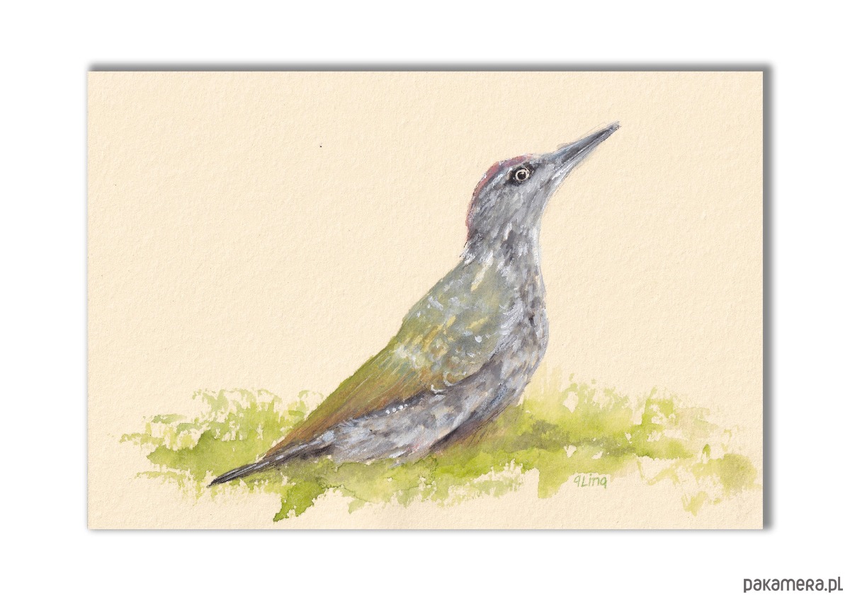 Dzięcioł zielony. Akwarela ręcznie malowana