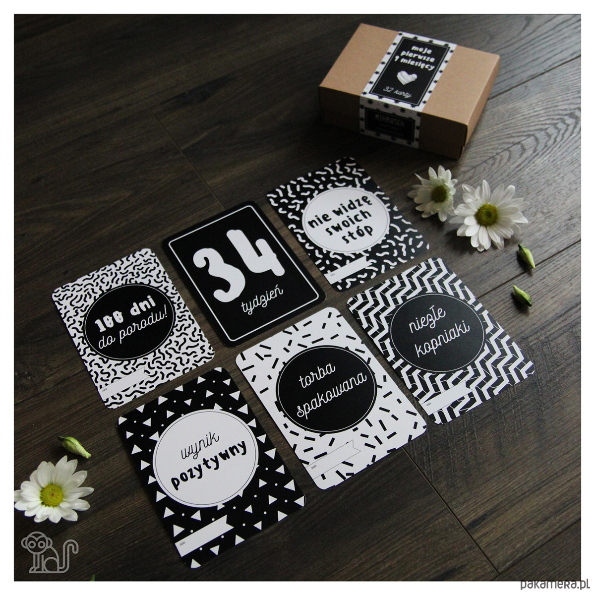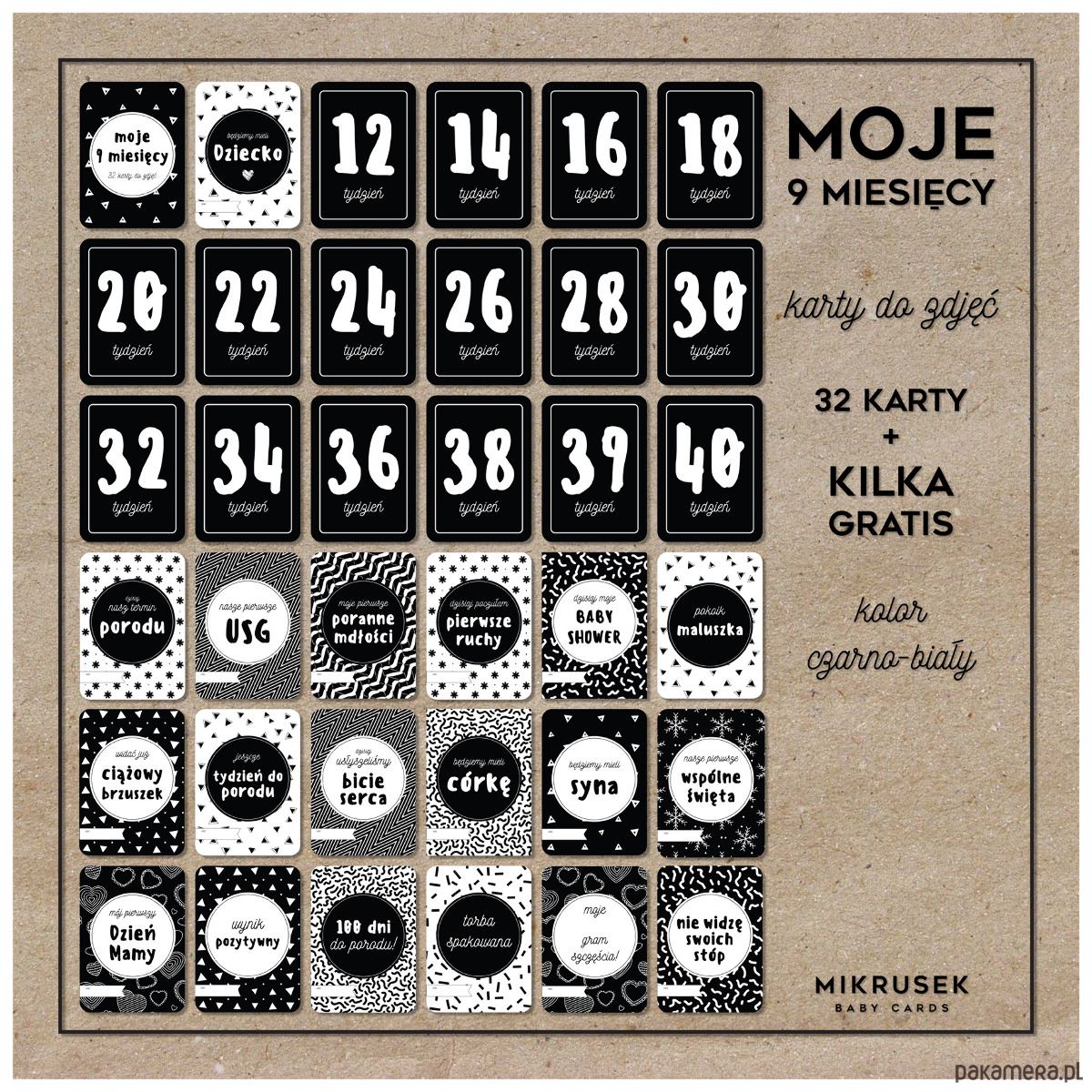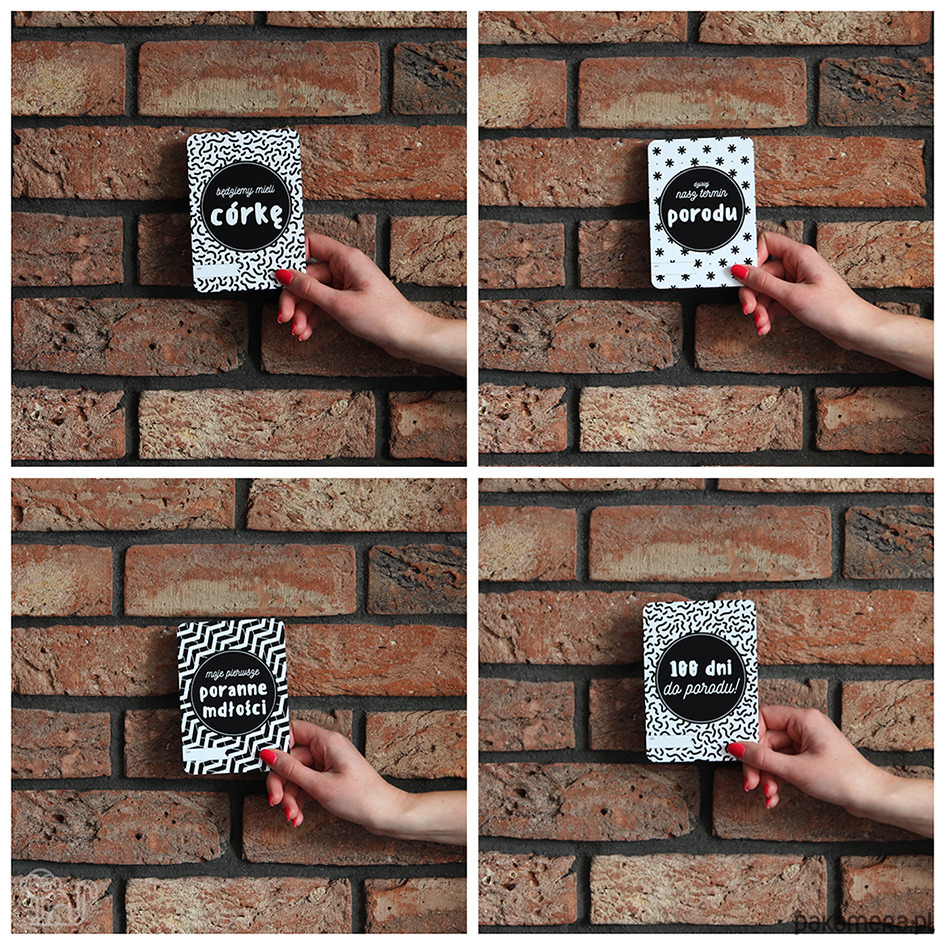 Zestawy 32 unikalnych i niepowtarzalnych kart do zdjęć. Dzięki naszym fotograficznym kartom zachowasz najpiękniejsze chwile z całych 9 miesięcy ciąży. Gwarantujemy, że dzięki naszym kartom Twoje wspomnienia będą zawsze żywe.
