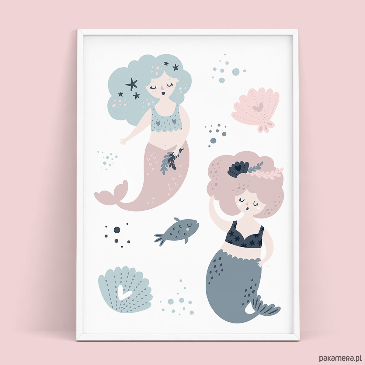 Plakat dziecięcy SYRENKI, MUSZELKI - kolekcja Syrenki to idealna dekoracja do pokoju dziecka.