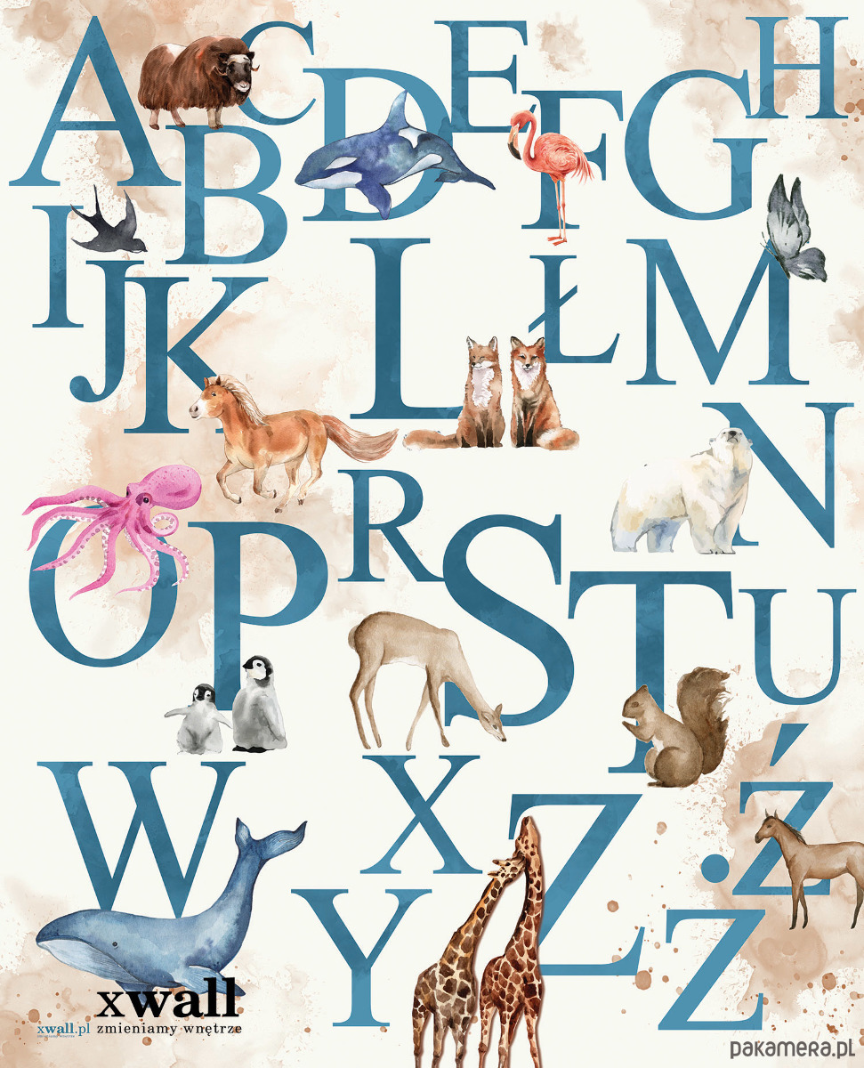 Akwarelowy alfabet ze zwierzętami doskonale sprawdzi się w każdym modnym pokoju dziecięcym