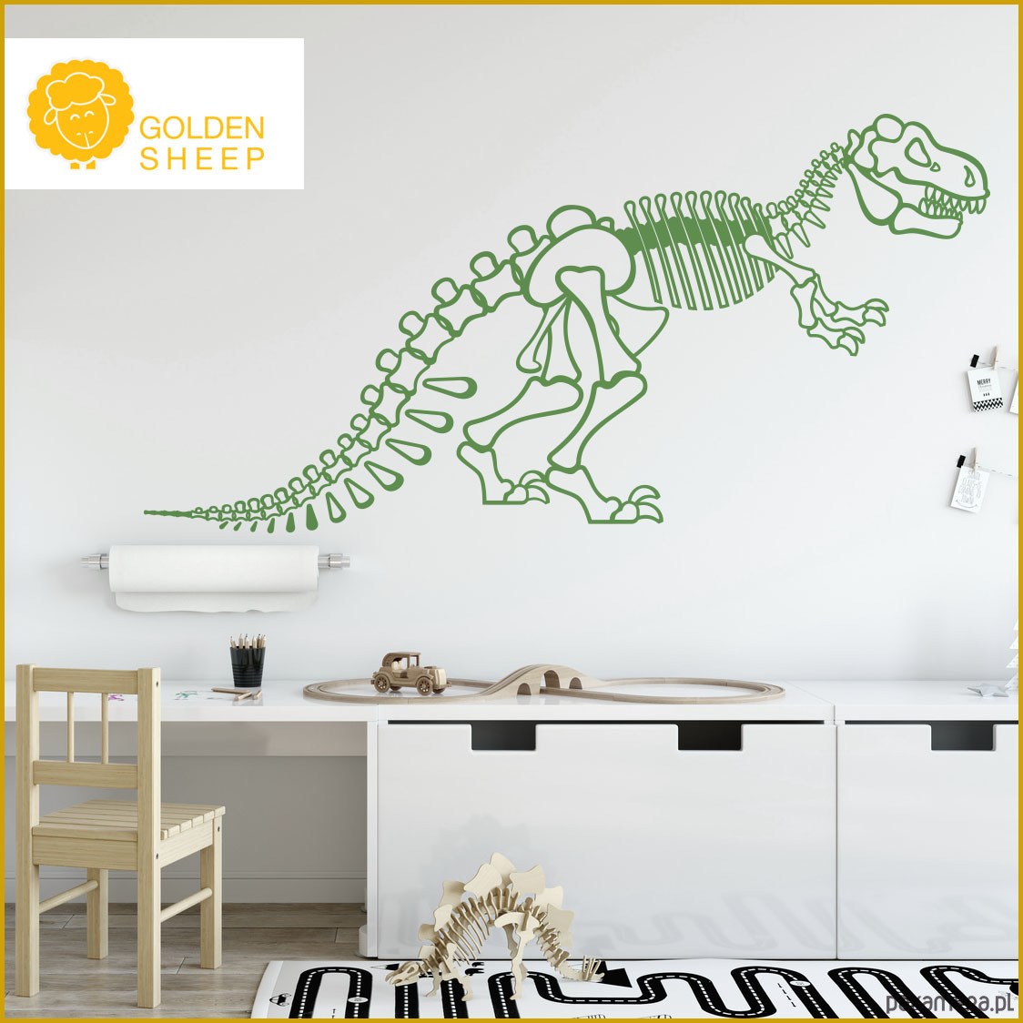Pracownia Golden Sheep zapraszam Państwa do aranżacji na ścianie naklejki ściennej TYRANOZAUR rozmiar M:)