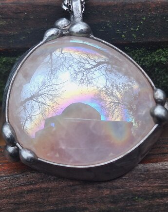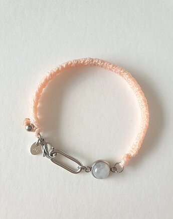 Bransoletka BOHO ręcznie tkana, jasny róż z kamieniem księżycowym