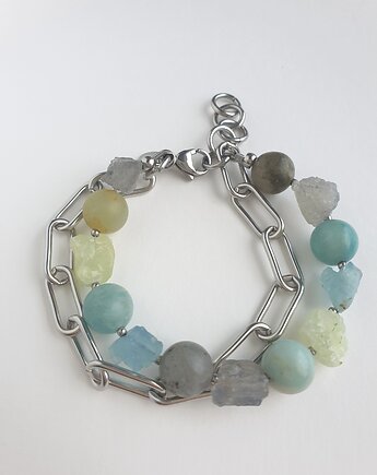 Bransoletka RAW z grubym łańcuchem, akwamaryn, amazonit, labradoryt, phrenit
