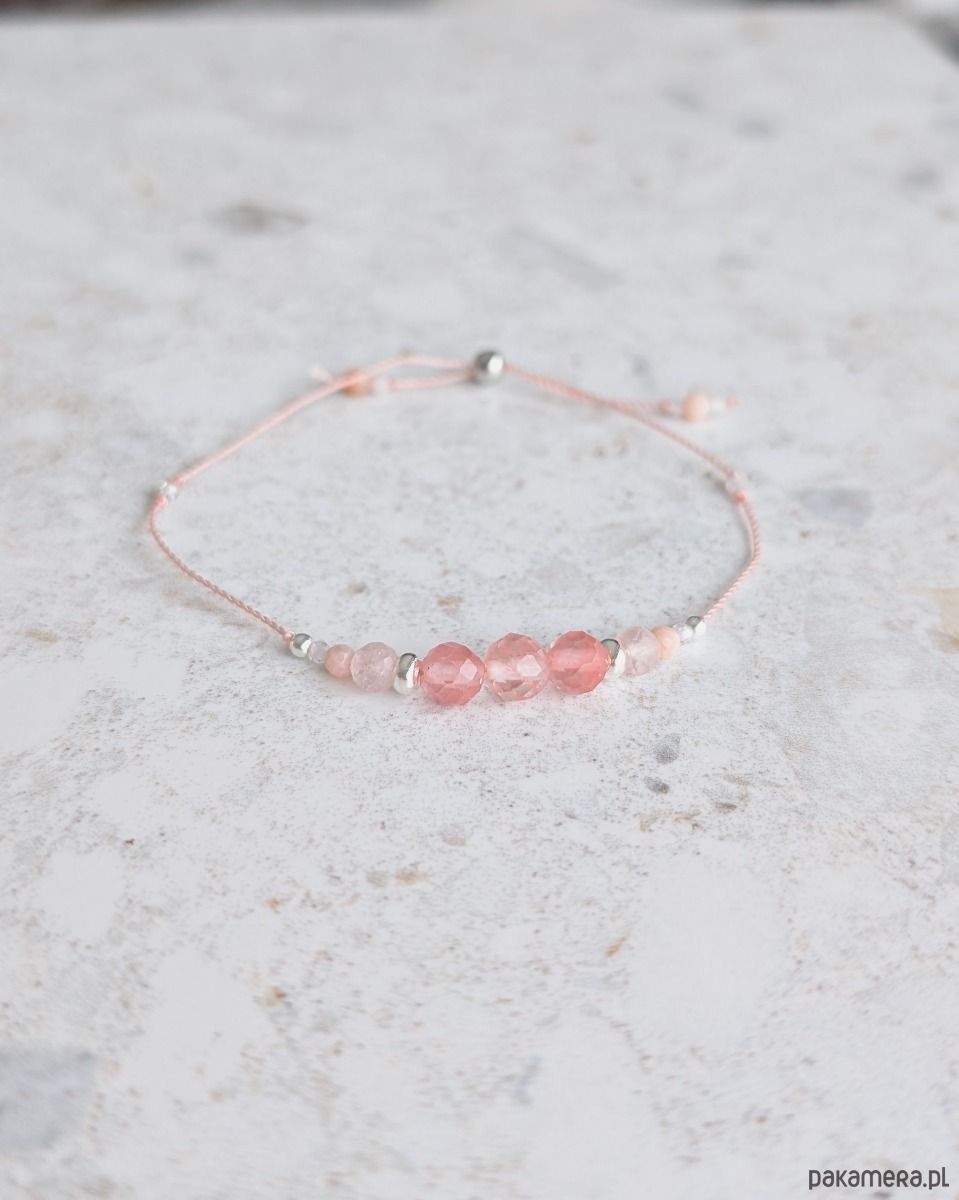 Dziewczęca bransoletka z różowymi kamieniami - kwarc, opal, agat