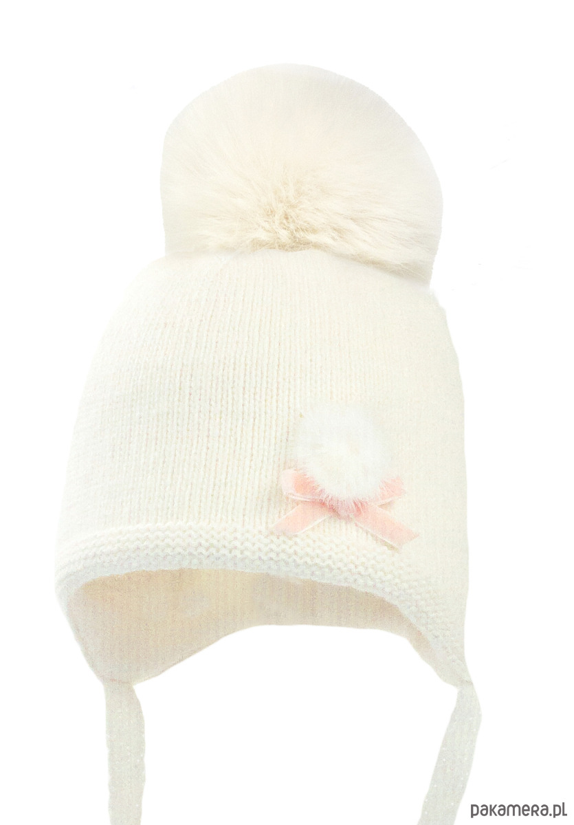 Dziewczęca czapka na zimę ALISENT z pomponem ekri