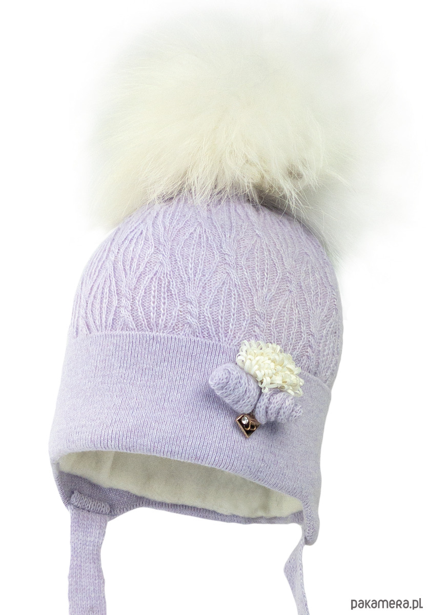Dziewczęca czapka na zimę KAMILA z pomponem lawendowy