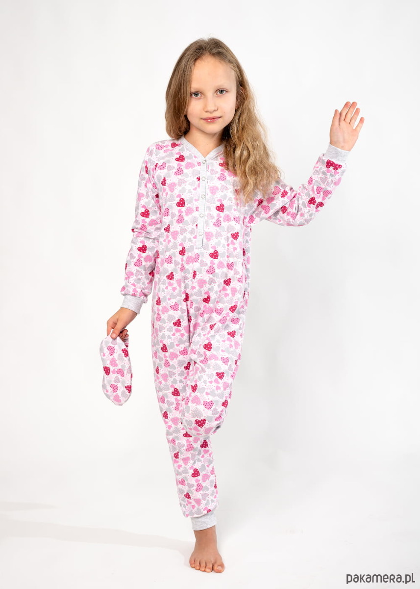 Idealny zestaw dla małej księżniczki. Wygodny, mięciutki kombinezon z długimi rękawami i nogawkami wykończonymi delikatnymi ściągaczami oraz przyjemnie relaksująca maseczka na oczy. Uszyliśmy go z naturalnej, oddychającej i bezpiecznej dla Twojej skóry najwyższej jakości bawełny. Zapięcie wykonaliśmy z hipoalergicznych, bezniklowych nap. Dołączona do zestawu maseczka doskonale zaciemnia, przyjemnie koi, reguluje produkcję melatoniny i korzystnie wpływa na zdrowy sen małego śpiocha :)
