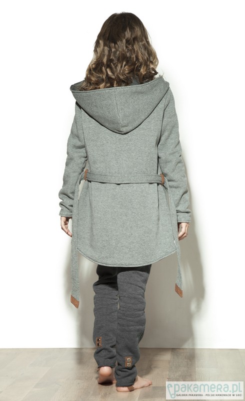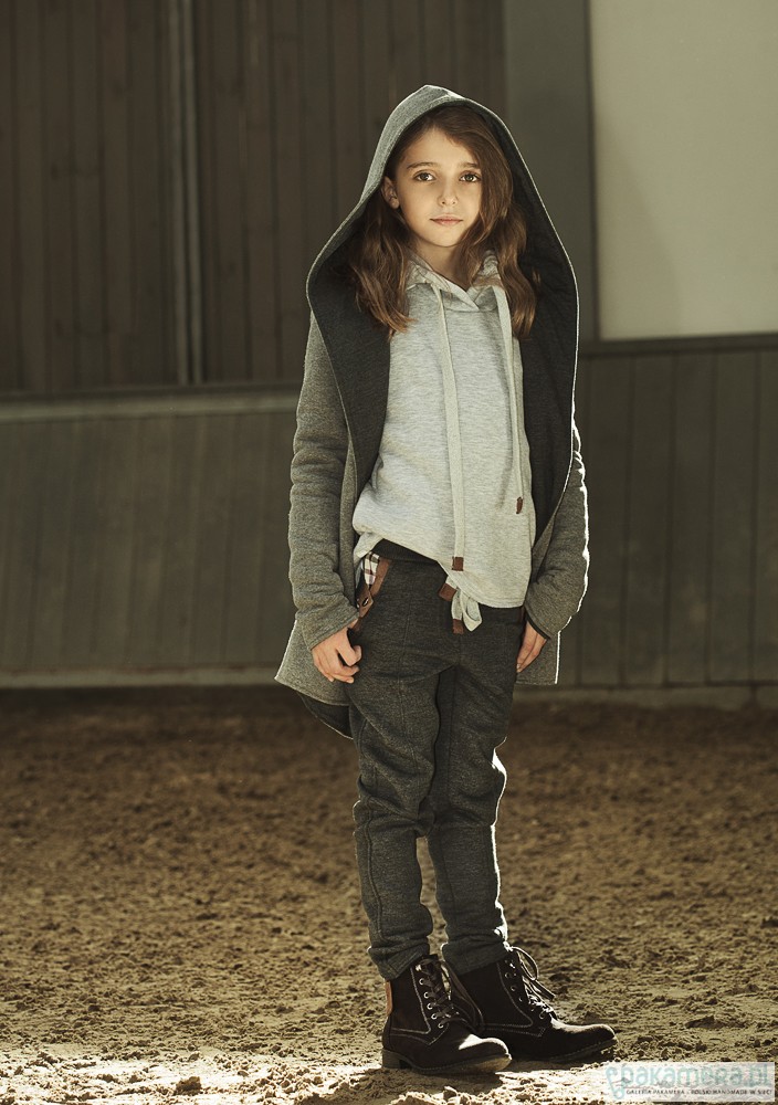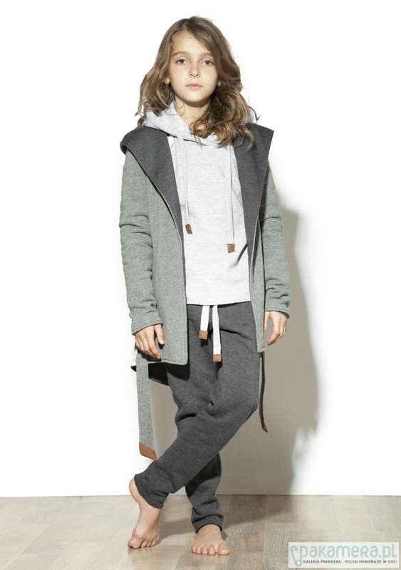 Płaszczyk z podszewką. Dwie głębokie kieszenie obszyte przyjemnym materiałem naśladujący miękką skórę. Całość przewiąż paskiem i biegnij łapać wiatr w kaptur. Dostępne rozmiary: 110-116, 122-128, 134-140,146-152 Skład: Na zewnątrz gruba dzianina dresowa - drapana 98% bawełna, 8% poliester Podszewka 100% bawełna