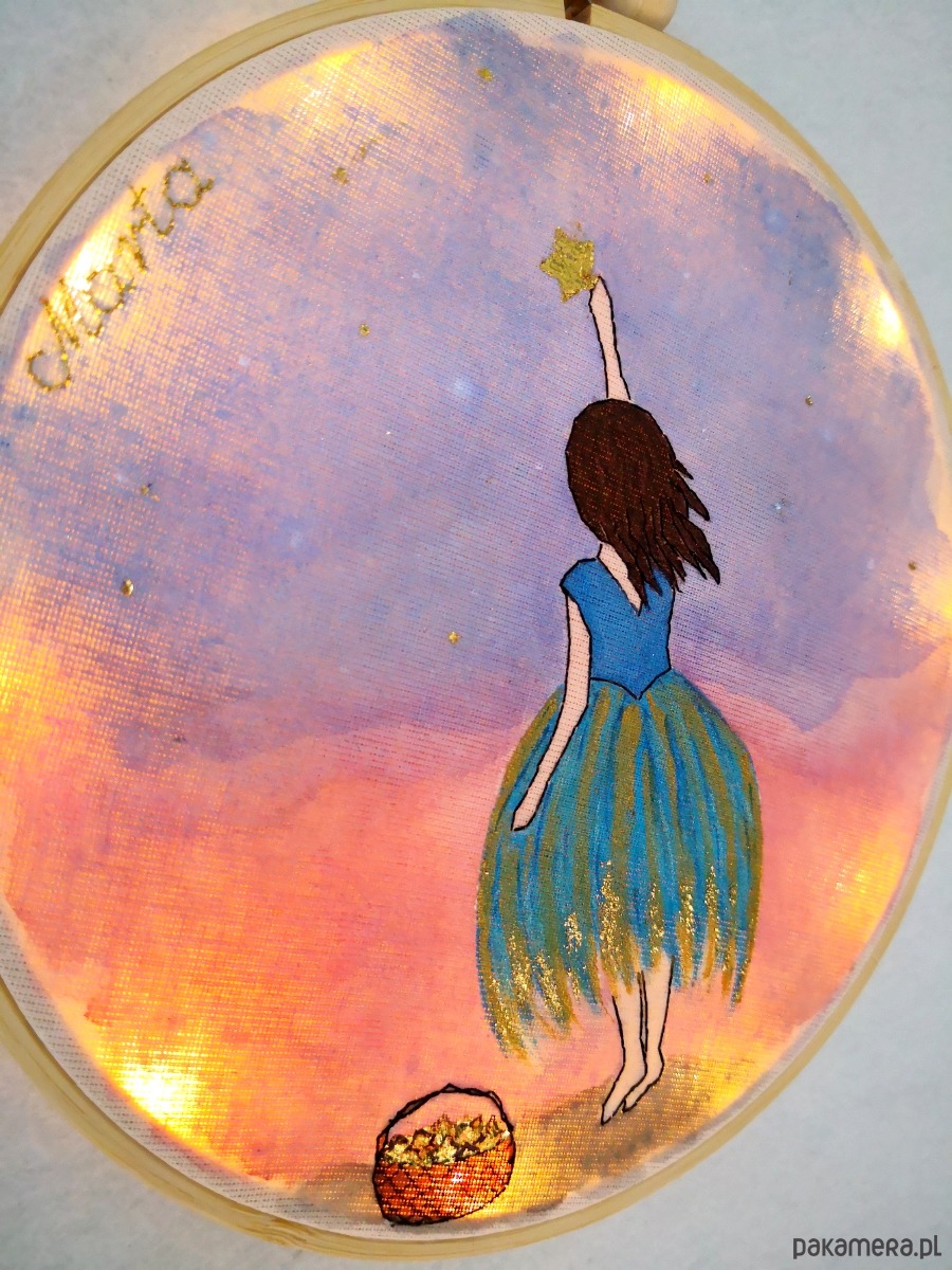 Dziewczynka sięgającą gwiazd - obrazek z podświetleniem