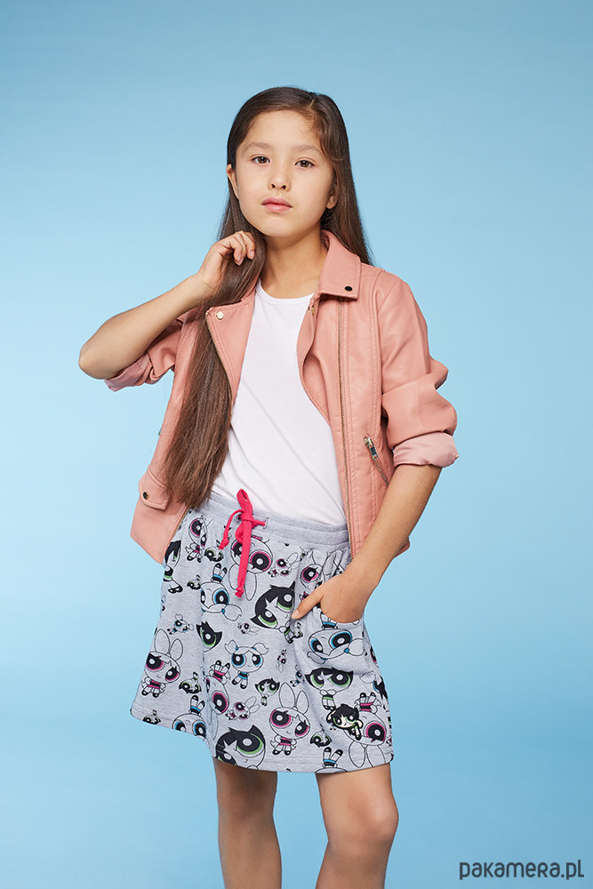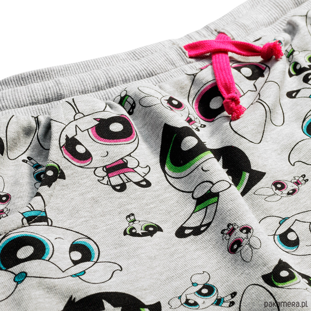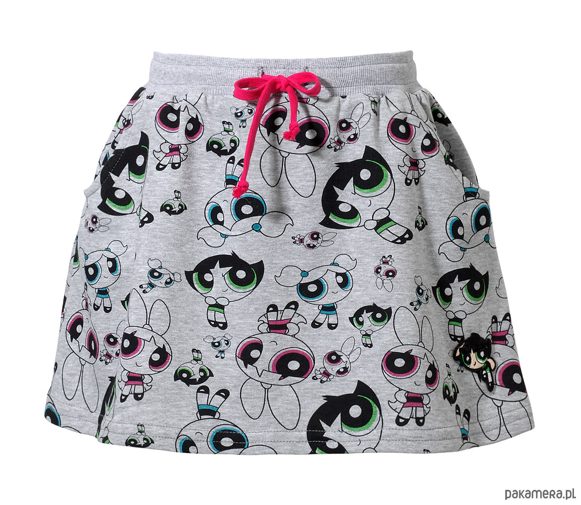 Krótka spódniczka w kolorze szarego melanżu z nadrukami i naszywkami PowerPuff Girls