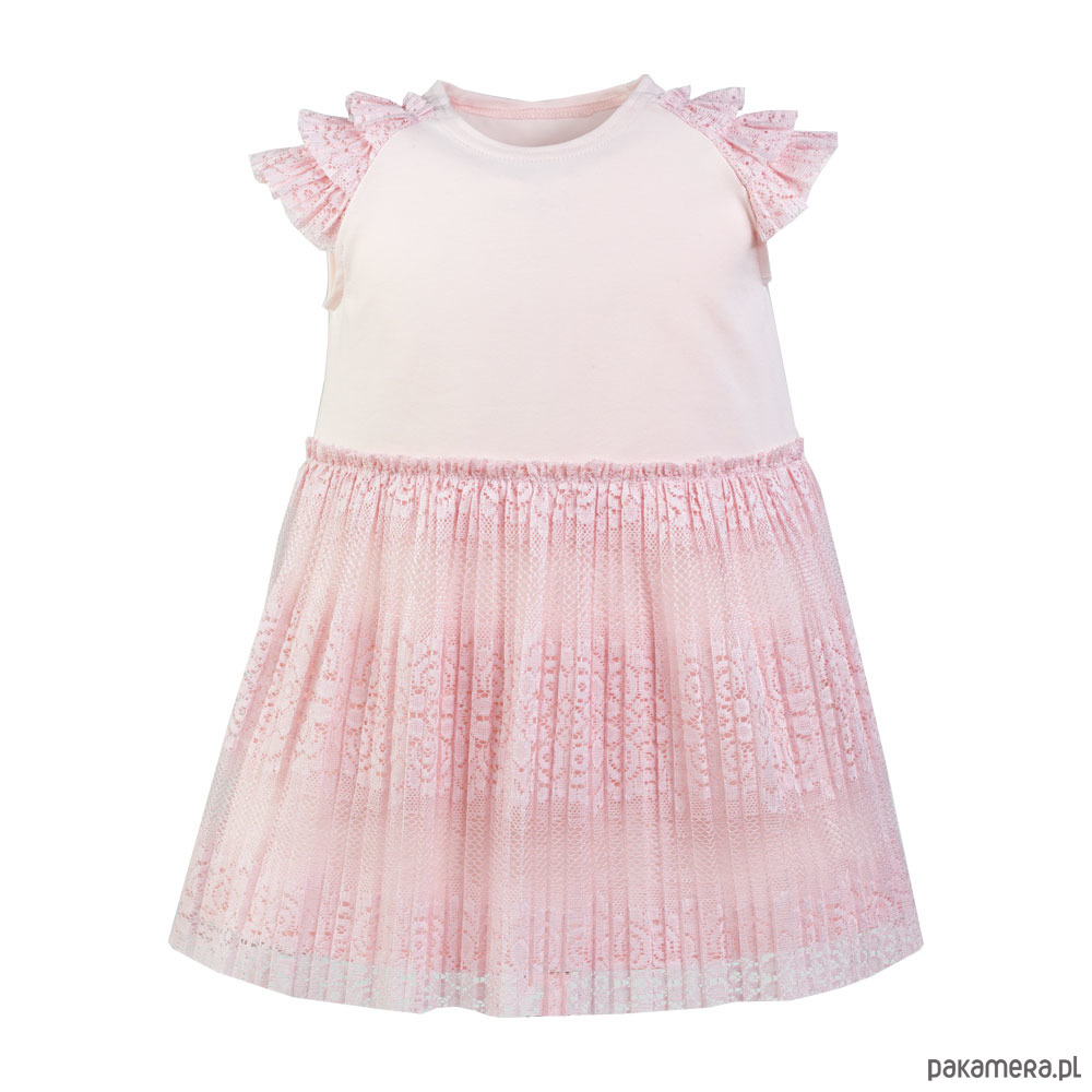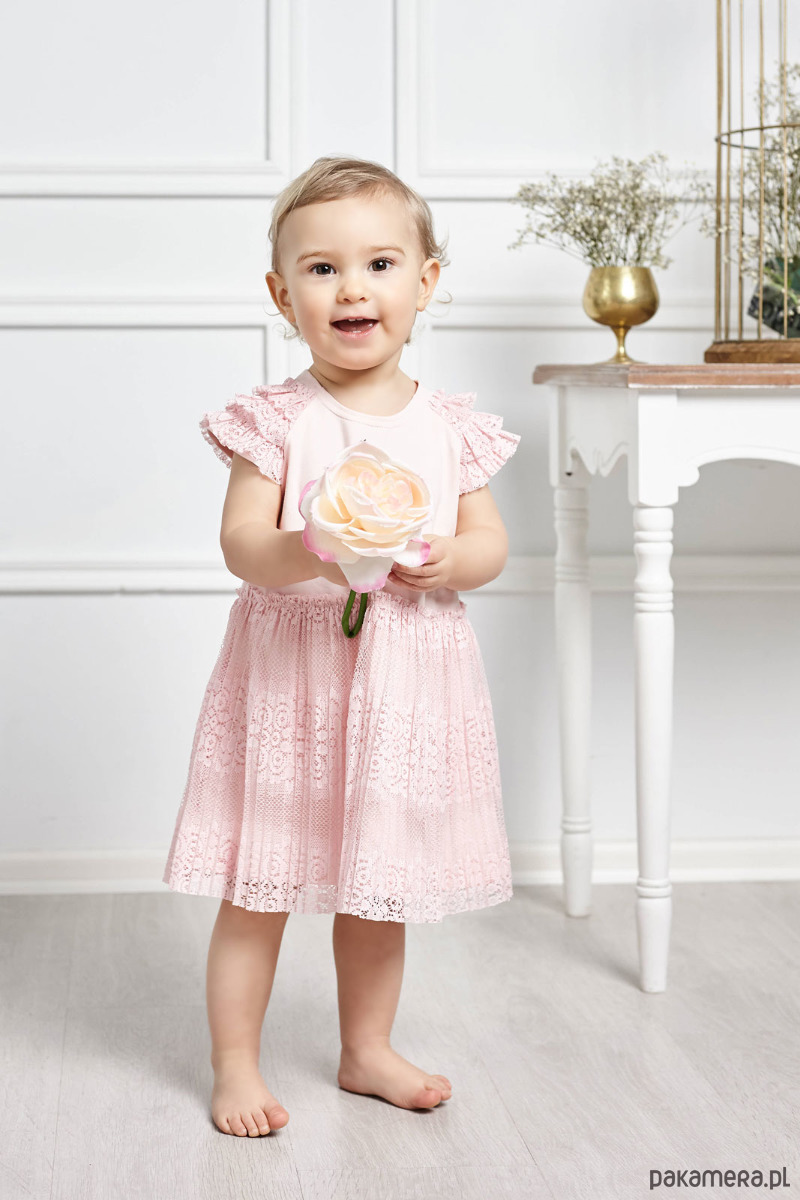 Dół i rękawki to plisowana koronka w kwiatowy wzór.
