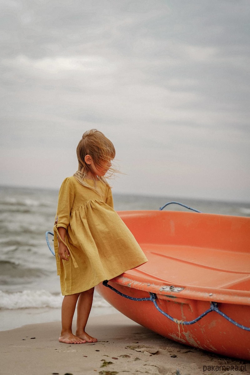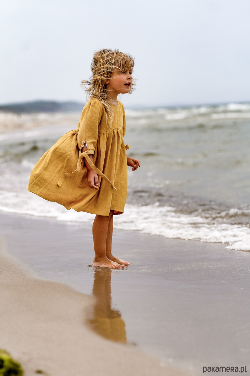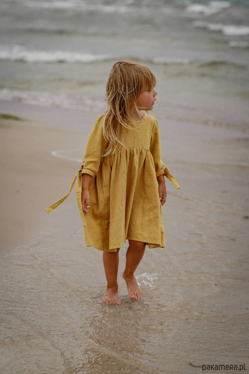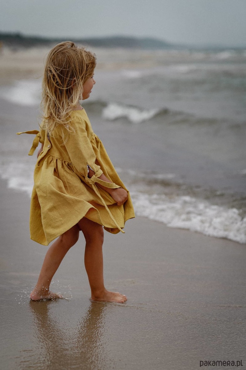 Sukienka w ciepłym żółtym odcieniu wywołuje mnóstwo pięknych wspomnień. Beztroskie dzieciństwo, zapach jeszcze zielonego lasu, zachodzące słońce wrześniowego popołudnia...