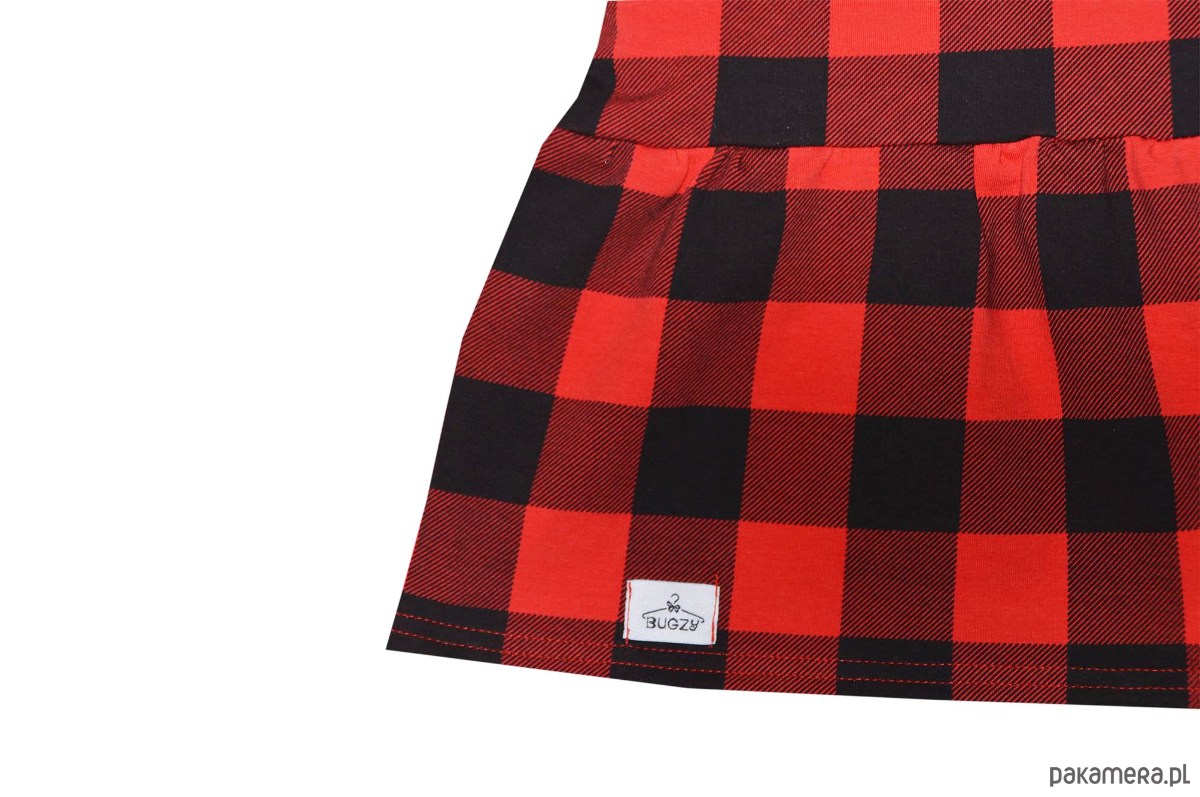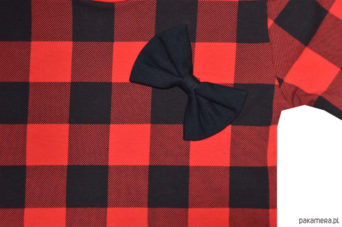 Elegancka sukienka w czerwono-czarną kratkę z długim rękawem oraz okrągłym dekoltem dla dziewczynki. Posiada wszytą na piersi czarną kokardkę, która dodaje jej uroku. Wykonana z miękkiej dzianiny dresowej. Rękawy wykończone ściągaczem, ściągacz również wokół szyi. Chcesz wyglądać elegancko i wyjątkowo – ta sukienka stworzona jest właśnie dla Ciebie.