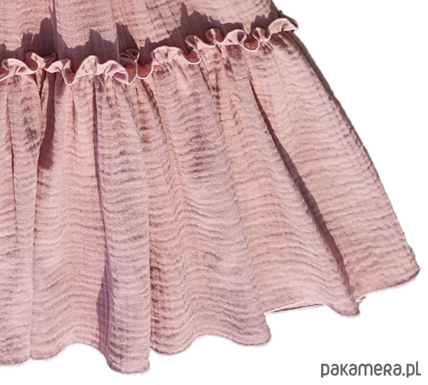 Dół uszyty z muślinu w kolorze różowym.