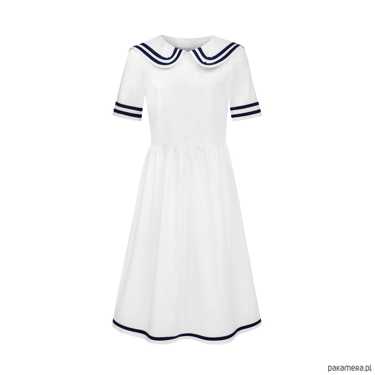 Bawełniana rozkloszowana sukienka w stylu marynarskim z odpinającym się kołnierzem na zatrzaski.
