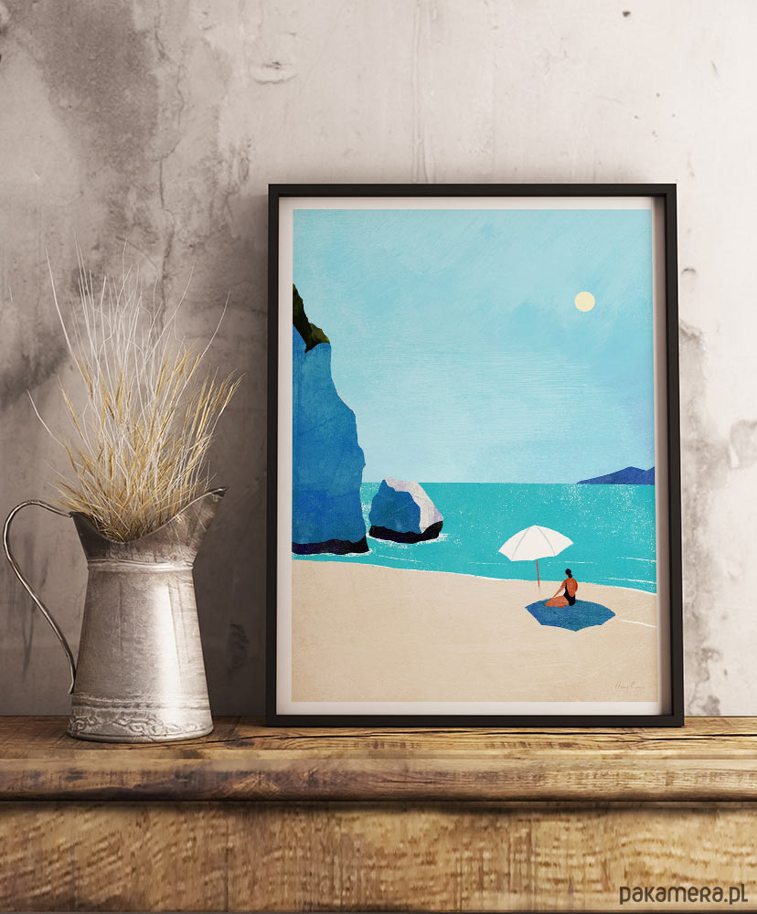 Plakat z dziką plażą będzie idealną dekoracją domu dla każdego, kto pragnie zachować przy sobie marzenie o wakacjach idealnych. Majestatyczne klify wystające z lazurowej wody, złoty piasek i zaciszna plaża wśród skał. Każdy element grafiki zdaje się odznaczać inną fakturą, co tworzy wyjątkowo malowniczy widok. Efektu dopełniają głębokie kolory - błękity i turkusy.