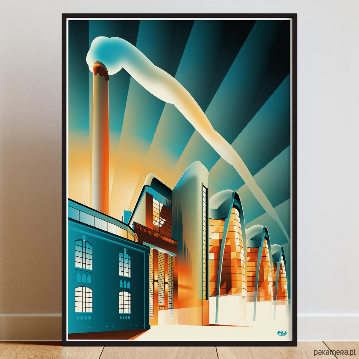 Dodaj do swojego wnętrza industrialny klimat z nutą futurystycznego designu dzięki plakatowi przedstawiającemu kompleks EC1 w Łodzi – serce dawnej elektrowni, dziś centrum nauki i kultury.