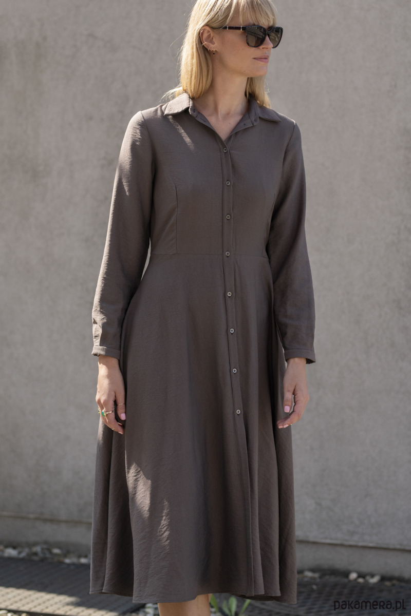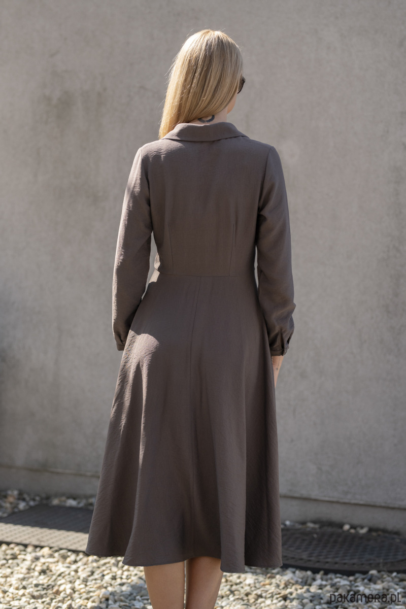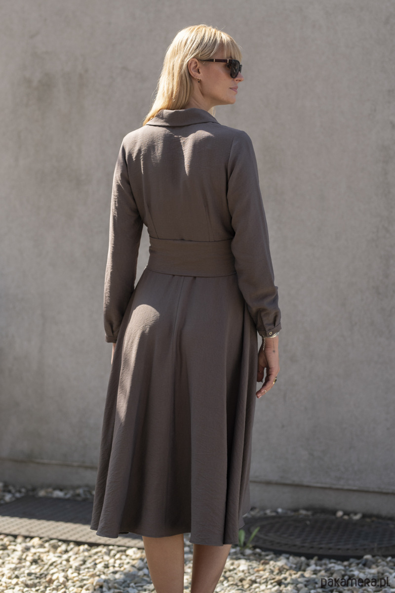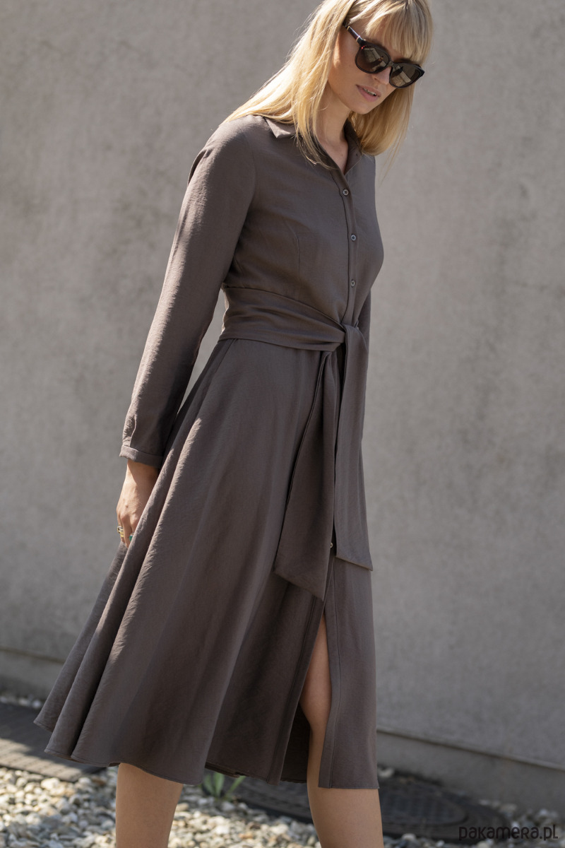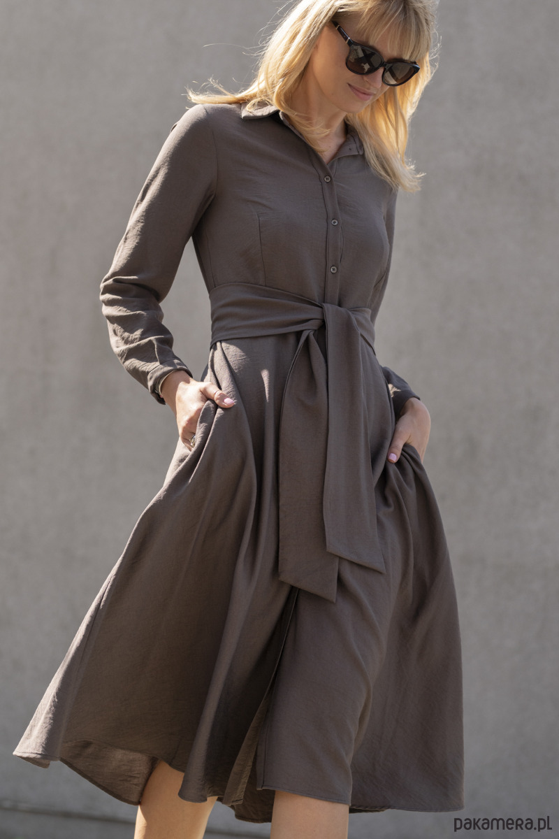 Wiskozowa sukienka midi z paskiem - kakao
