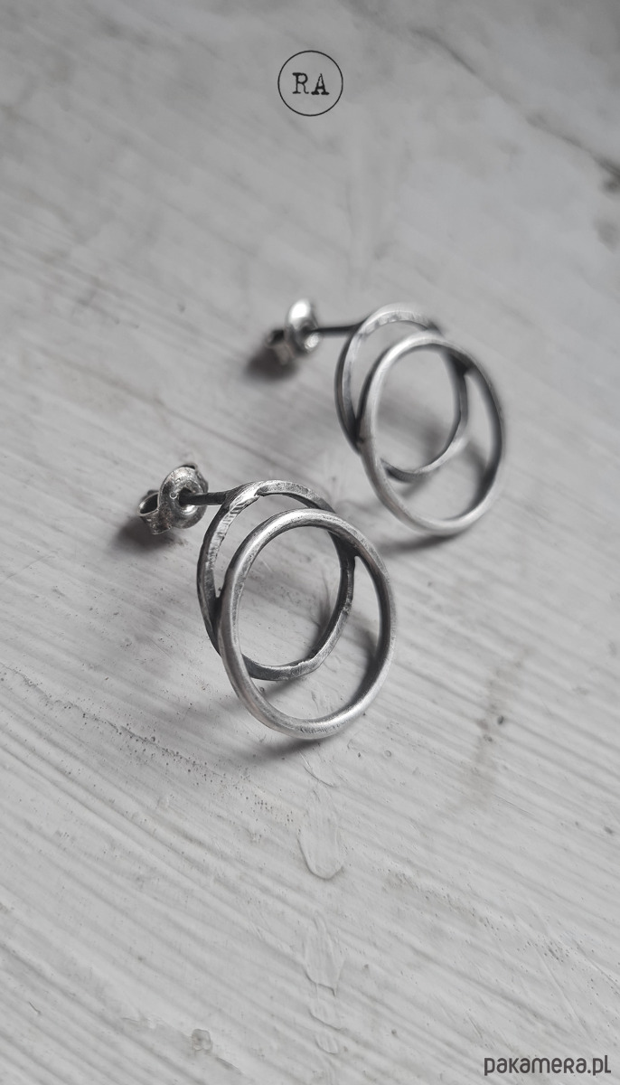 ECLIPSE - kolczyki srebrne ręcznie kute oksydowane