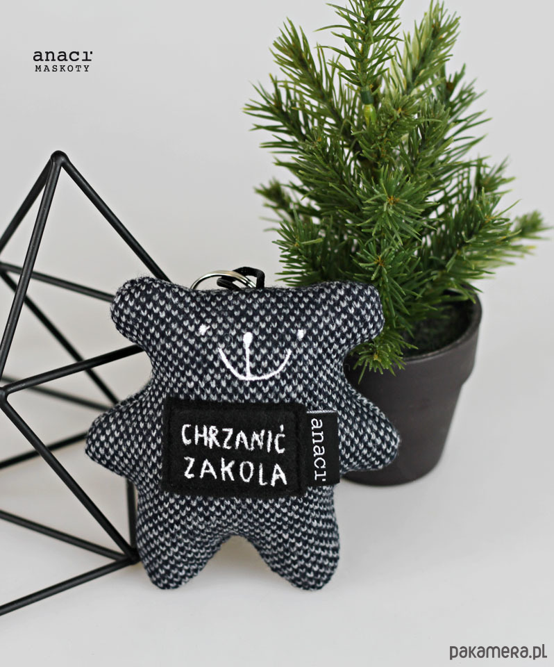 Uszyty z dzianiny tweedowej , mierzy sobie 10, 5 cm. i ma gdzieś swoje niedoskonałości :)