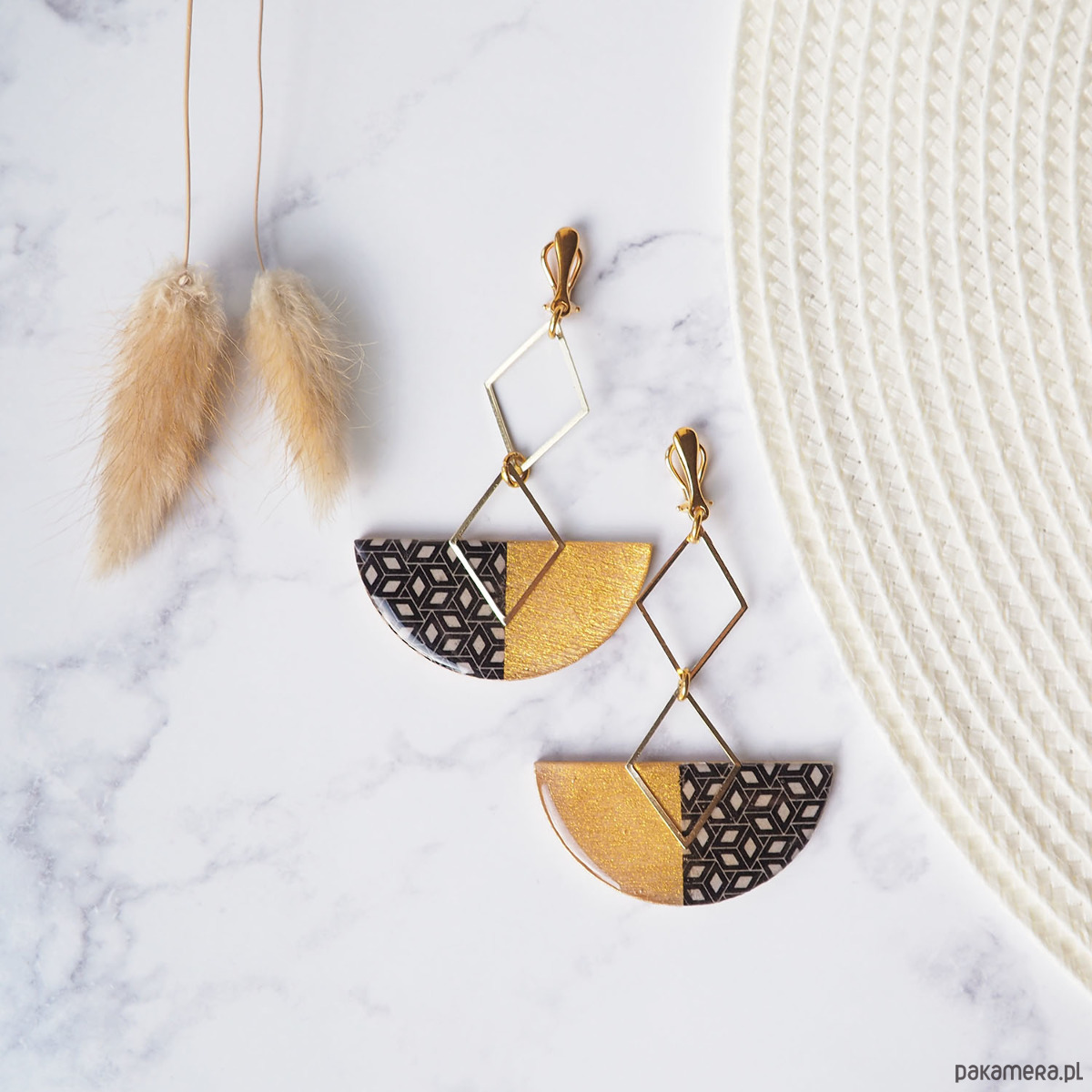 Bardzo oryginalne i niezwykle efektowne klipsy wiszące, wykonane autorską techniką. Klipsy pochodzą z kolekcji ''Goldeano''.