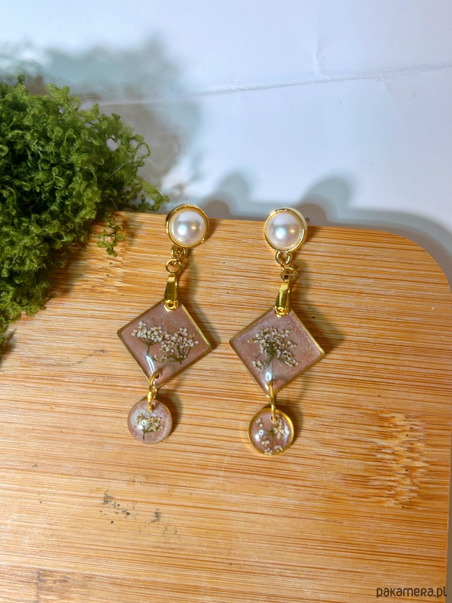 Efektowne wiszące kolczyki z kwiatami Dzika marchew