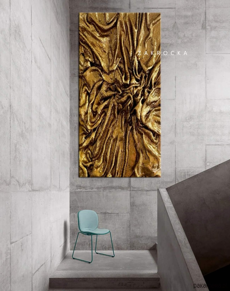 Efektowny duży obraz płaskorzeźba brudne złoto L'OR 80x160cm